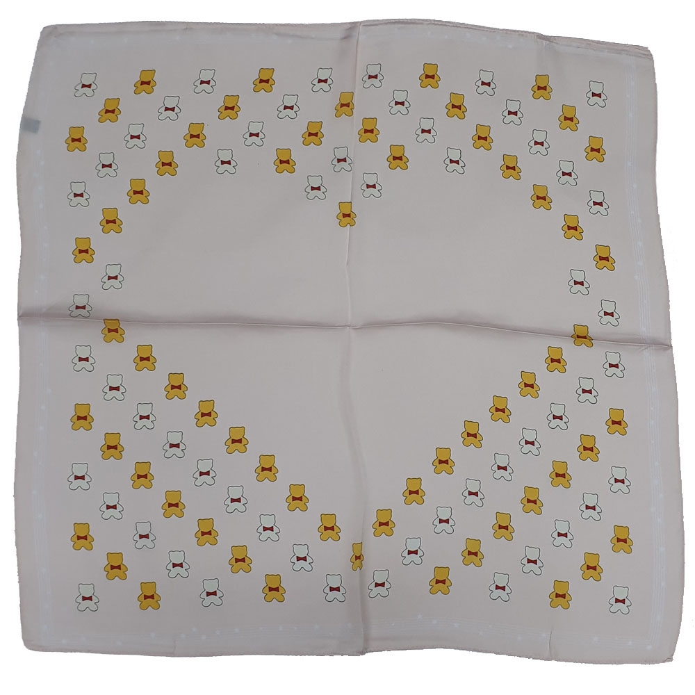 Baby ροζ μαντήλα με αίσθηση μεταξιού και heart shapped λευκά και μουσταρδί αρκουδάκια