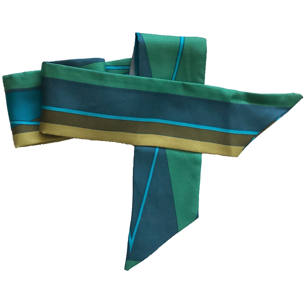 Διπλό πετρόλ Ιταλικό μεταξωτό φουλάρι bandeau με γραμμικό σχέδιο