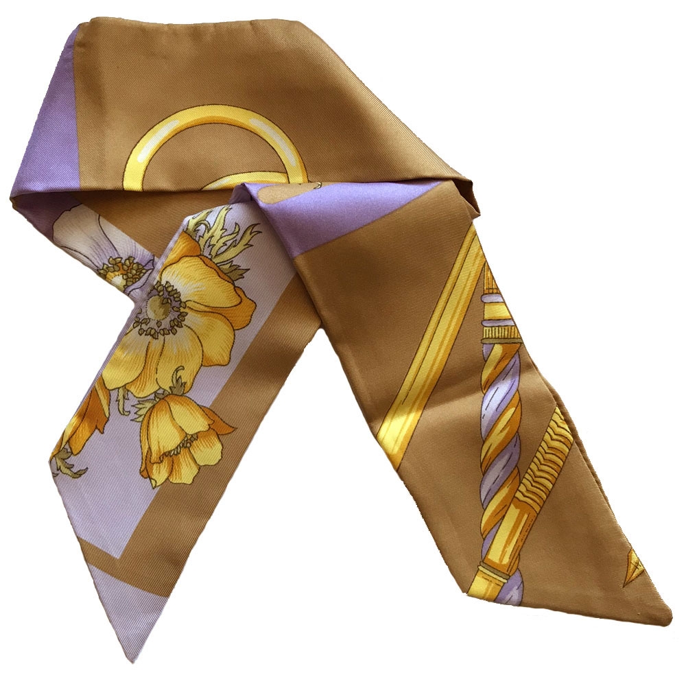 Διπλό λιλά Ιταλικό μεταξωτό φουλάρι bandeau με λουλούδια