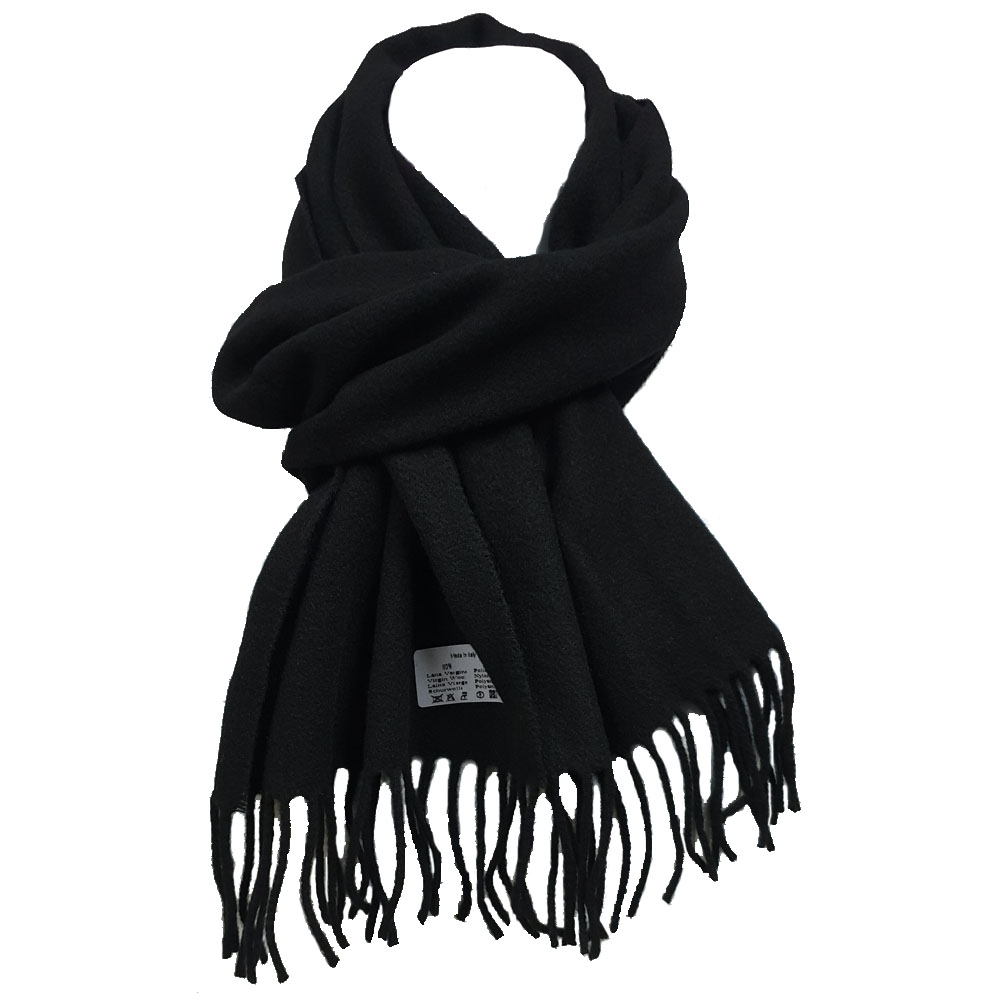 Μονόχρωμο μαύρο Ιταλικό μάλλινο unisex κασκόλ εξαιρετικής ποιότητας