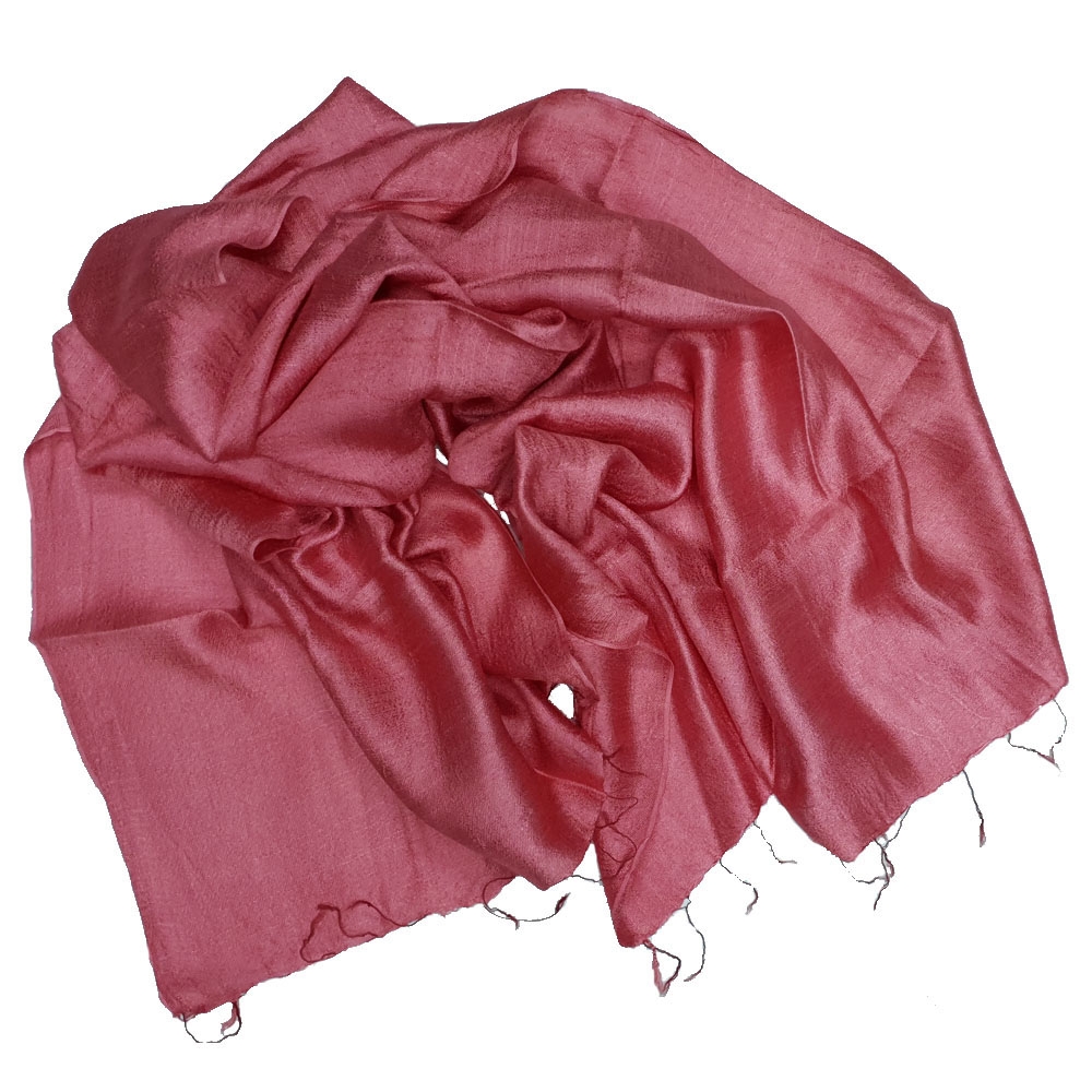 Μονόχρωμο ροζ retro φαρδύ φουλάρι - εσάρπα από ακατέργαστο μετάξι