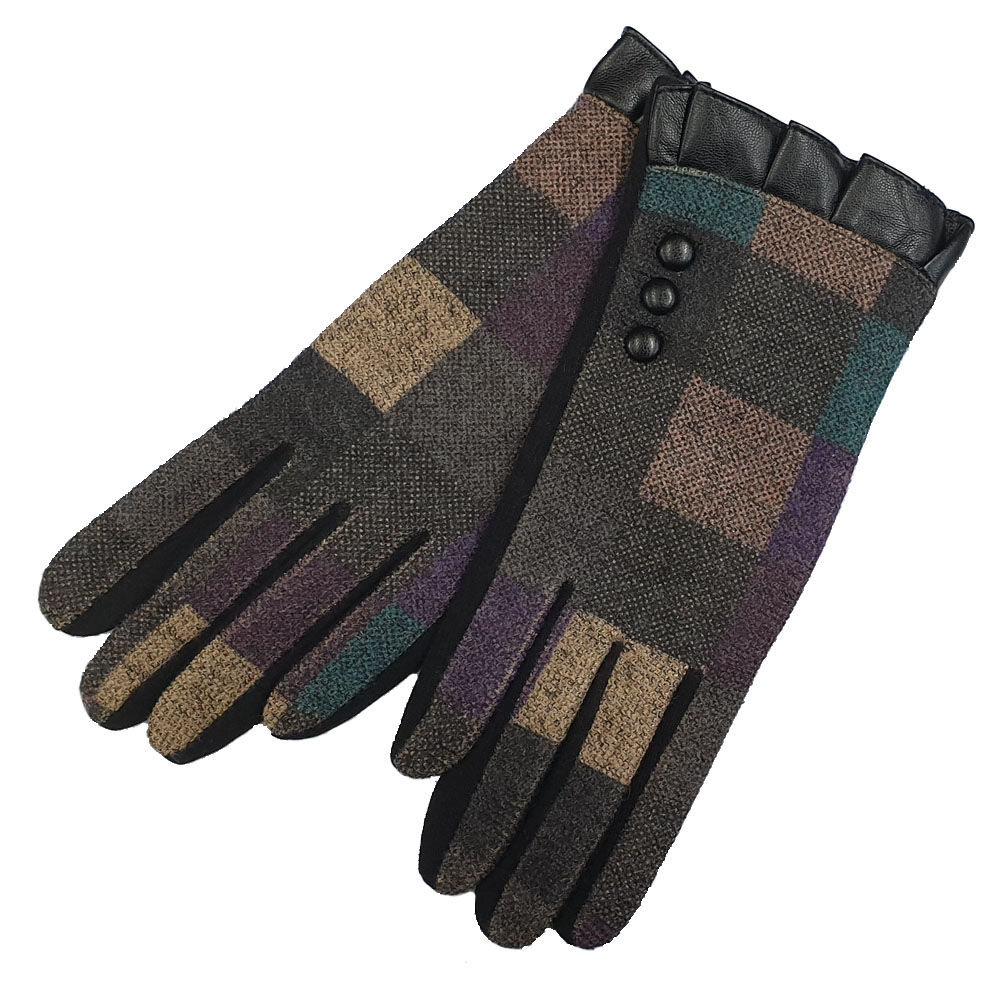 Ελαστικά γάντια με πετρόλ, μωβ και καφέ καρό σχέδιο και φραμπαλά περικάρπιο