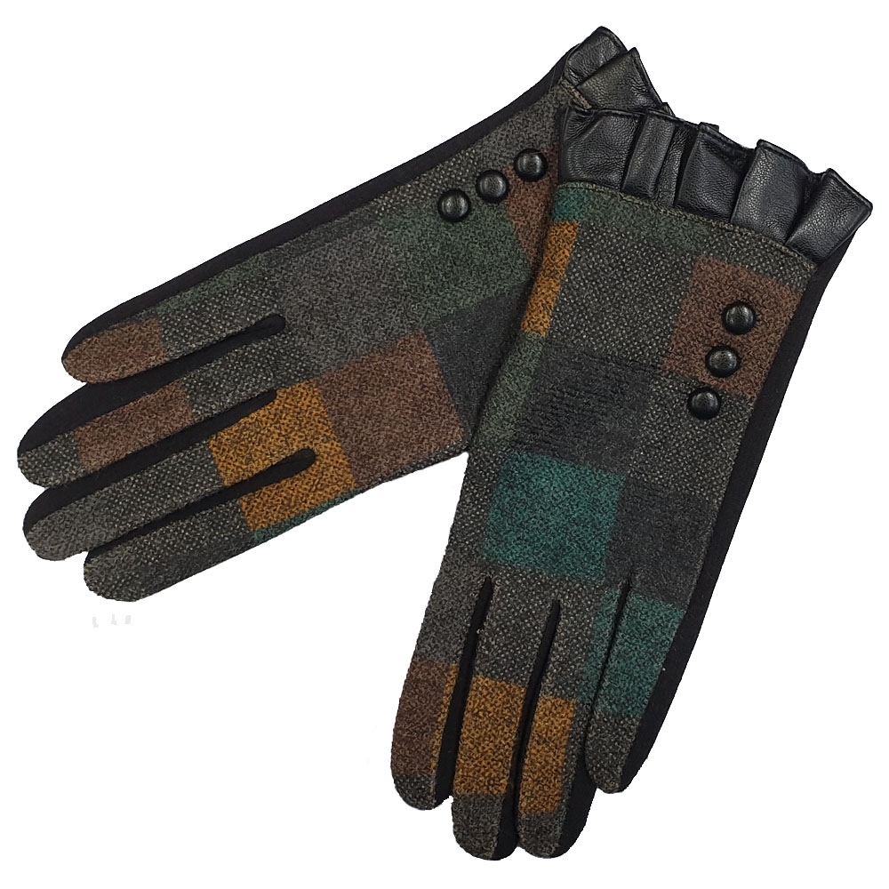 Ελαστικά γάντια με πετρόλ, μουσταρδί και καφέ καρό σχέδιο και φραμπαλά περικάρπιο