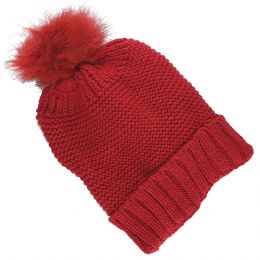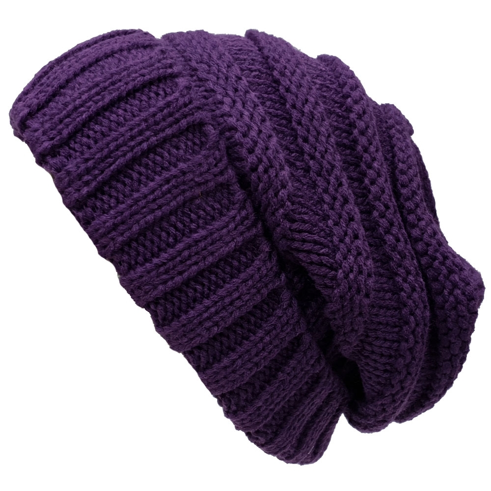 Μονόχρωμος μωβ πλεκτός unisex σκούφος με ριγέ ύφανση