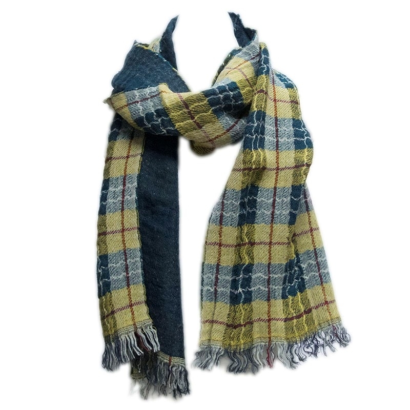 Ιταλικό μάλλινο unisex κασκόλ διπλής όψης με καρό και μονόχρωμη πετρόλ πλευρά