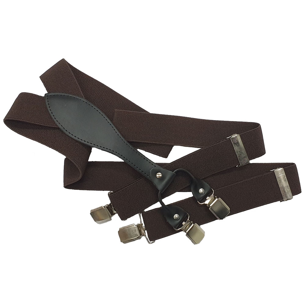 Μονόχρωμες καφέ τιράντες με διπλά κλιπ και συνθετικό δέρμα