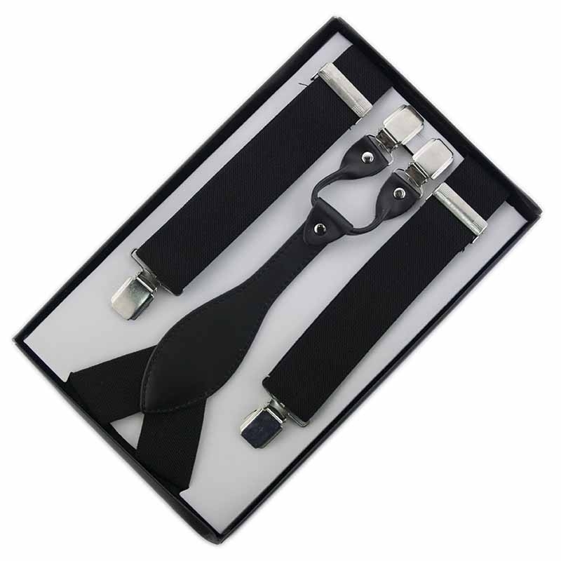 Μονόχρωμες μαύρες τιράντες με διπλά κλιπ και συνθετικό δέρμα