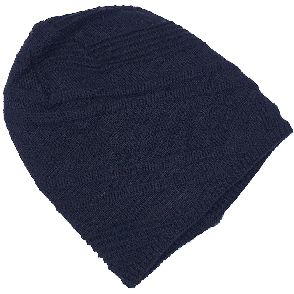 Μονόχρωμος μπλε πλεκτός unisex σκούφος με γραμμικά σχέδια και λούτρινη επένδυση