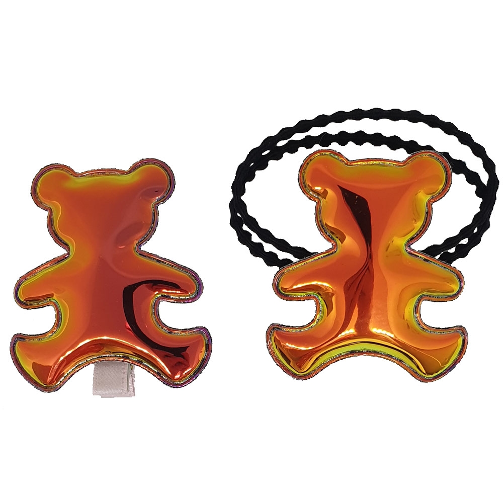 Πορτοκαλί ιριδίζον σετ κοκαλάκια μαλλιών Αρκουδάκι