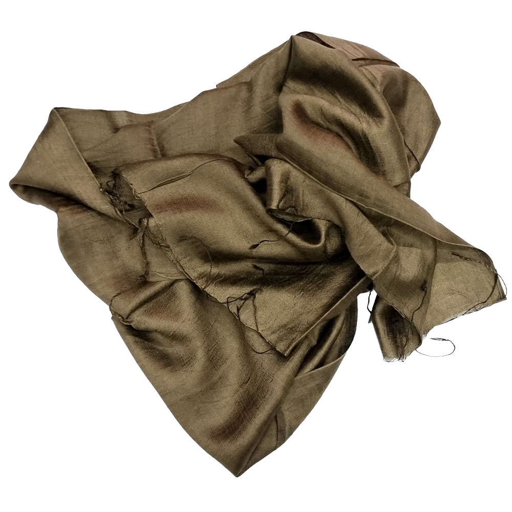 Μονόχρωμο brown olive φαρδύ φουλάρι - εσάρπα από ακατέργαστο μετάξι