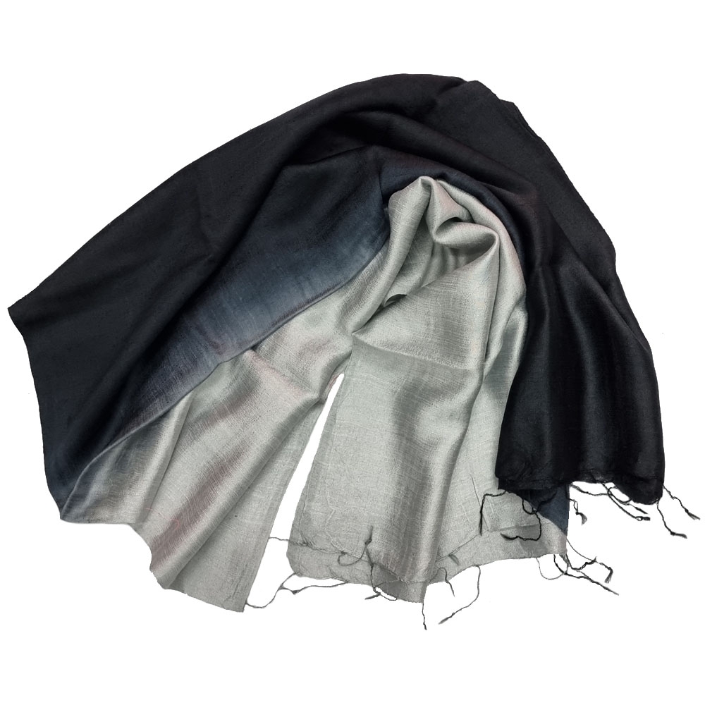 Ombre black silver φαρδύ φουλάρι - εσάρπα από ακατέργαστο μετάξι