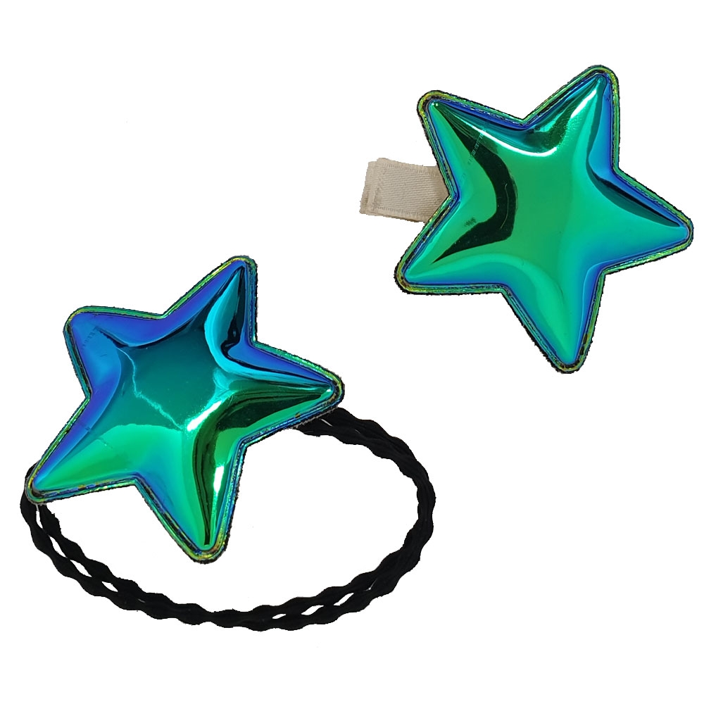 Λαστιχάκι και clip μαλλιών με πράσινο ιριδίζον αστέρι