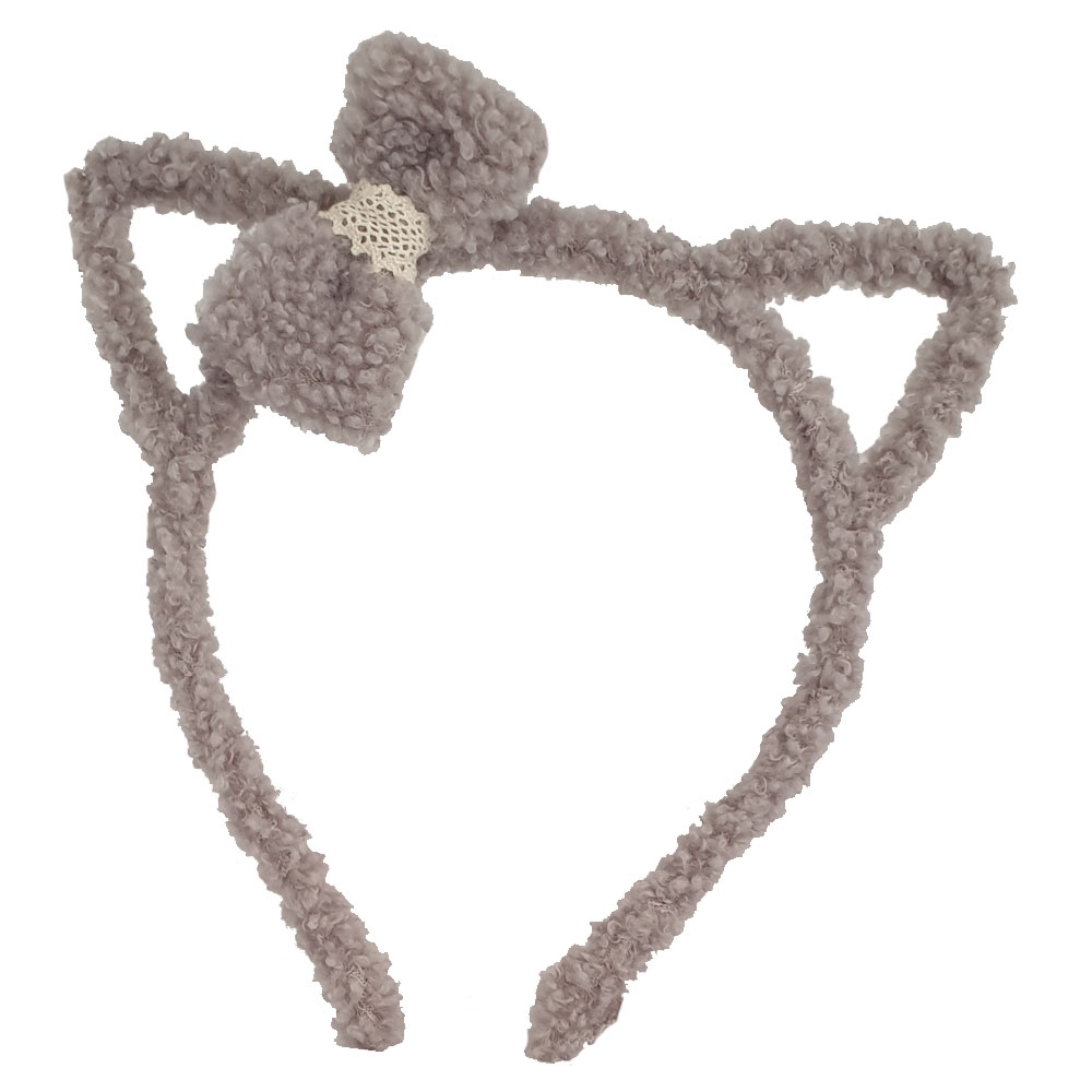 Γκρι fleece στέκα μαλλιών με αυτάκια και φιόγκο