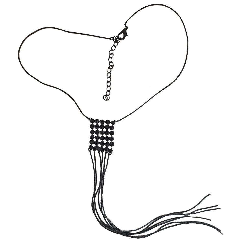 Μαύρη αλυσίδα λαιμού με κρόσσια και τετράγωνο charm με μαύρα strass