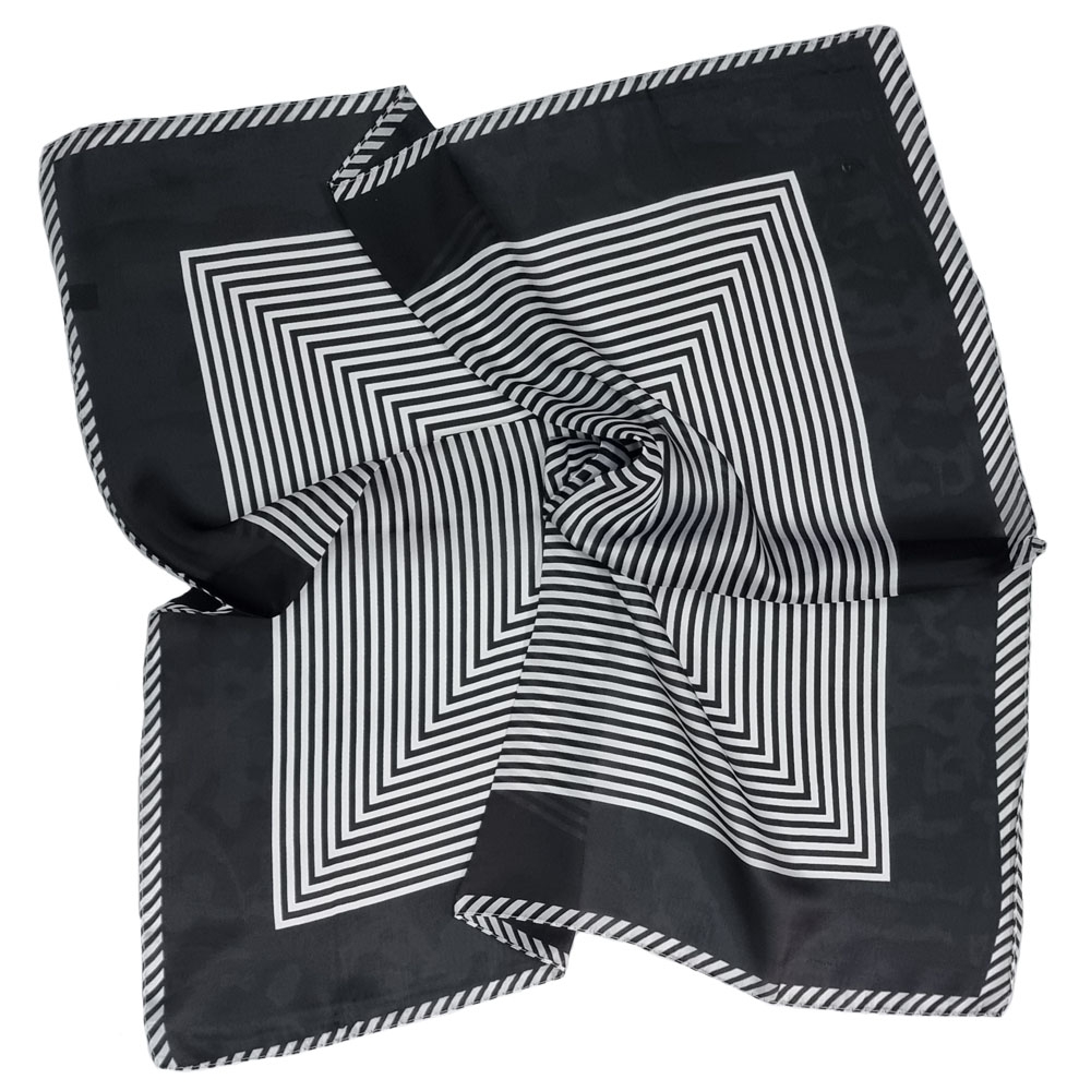 Ασπρόμαυρη ριγέ μαντήλα με αίσθηση μεταξιού και μαύρη μπορντούρα