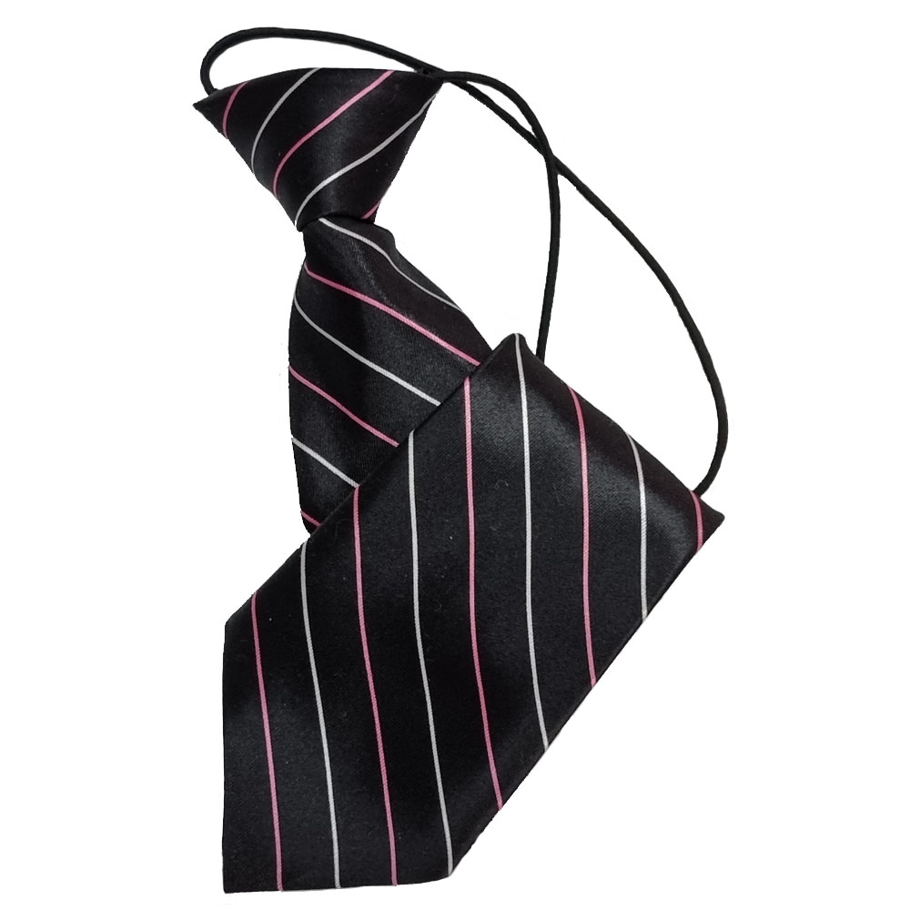 Μαύρη παιδική γραβάτα με ροζ και λευκές λεπτές ρίγες