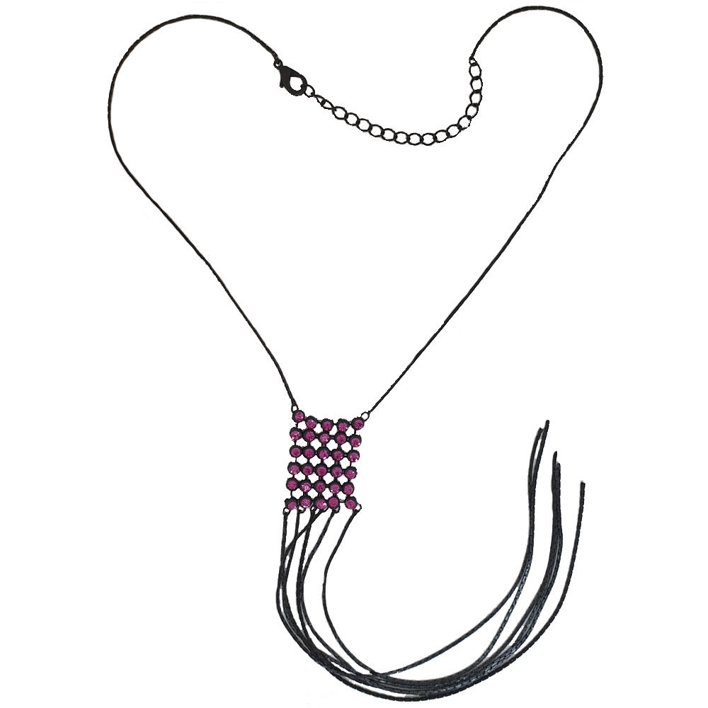Μαύρη αλυσίδα λαιμού με κρόσσια και τετράγωνο charm με ροζ strass