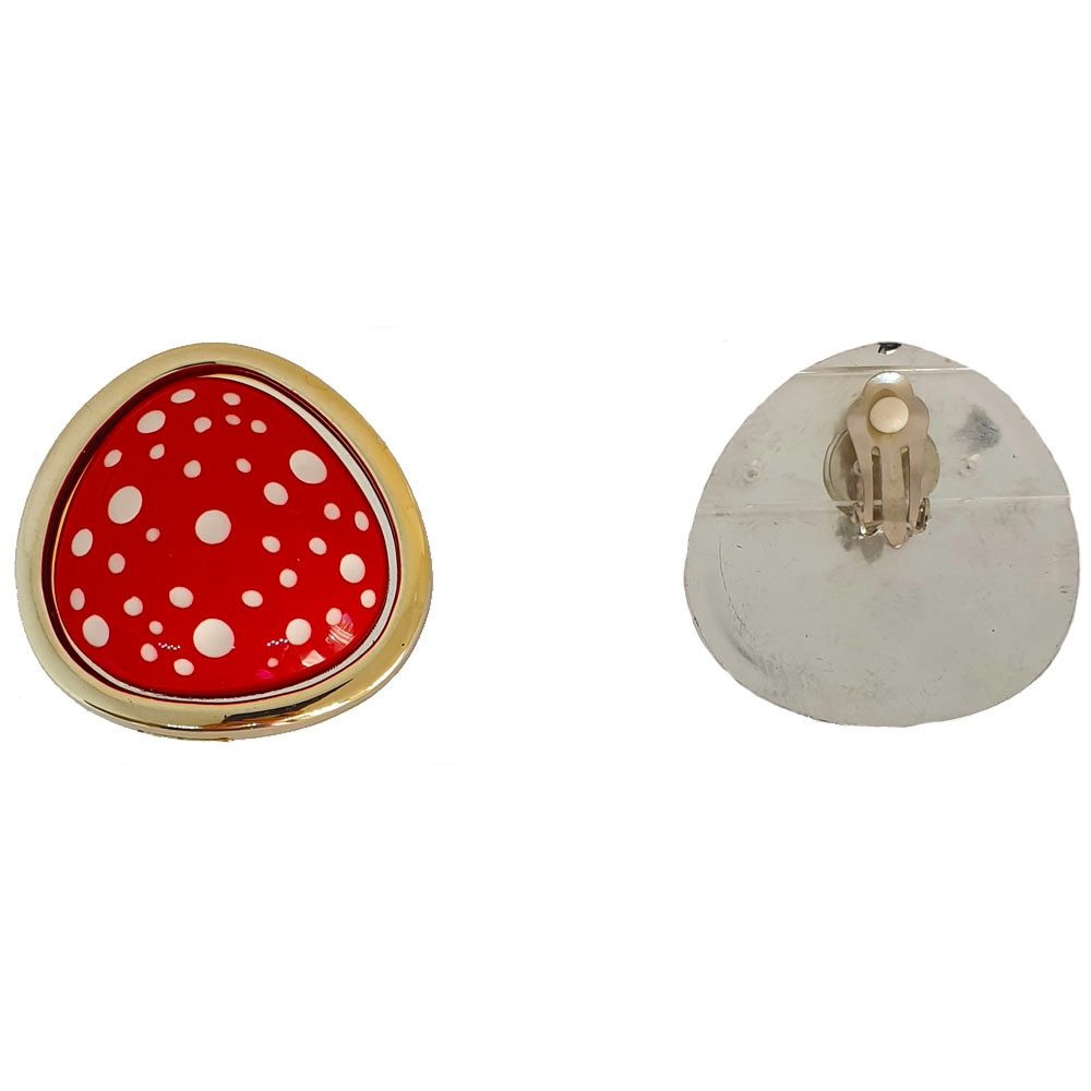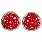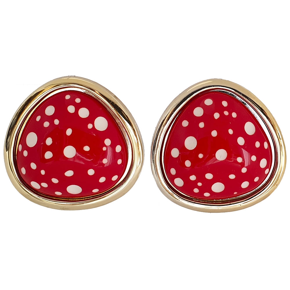 Μεγάλα τρίγωνα κόκκινα πουά σκουλαρίκια κλιπ με χρυσή βάση