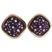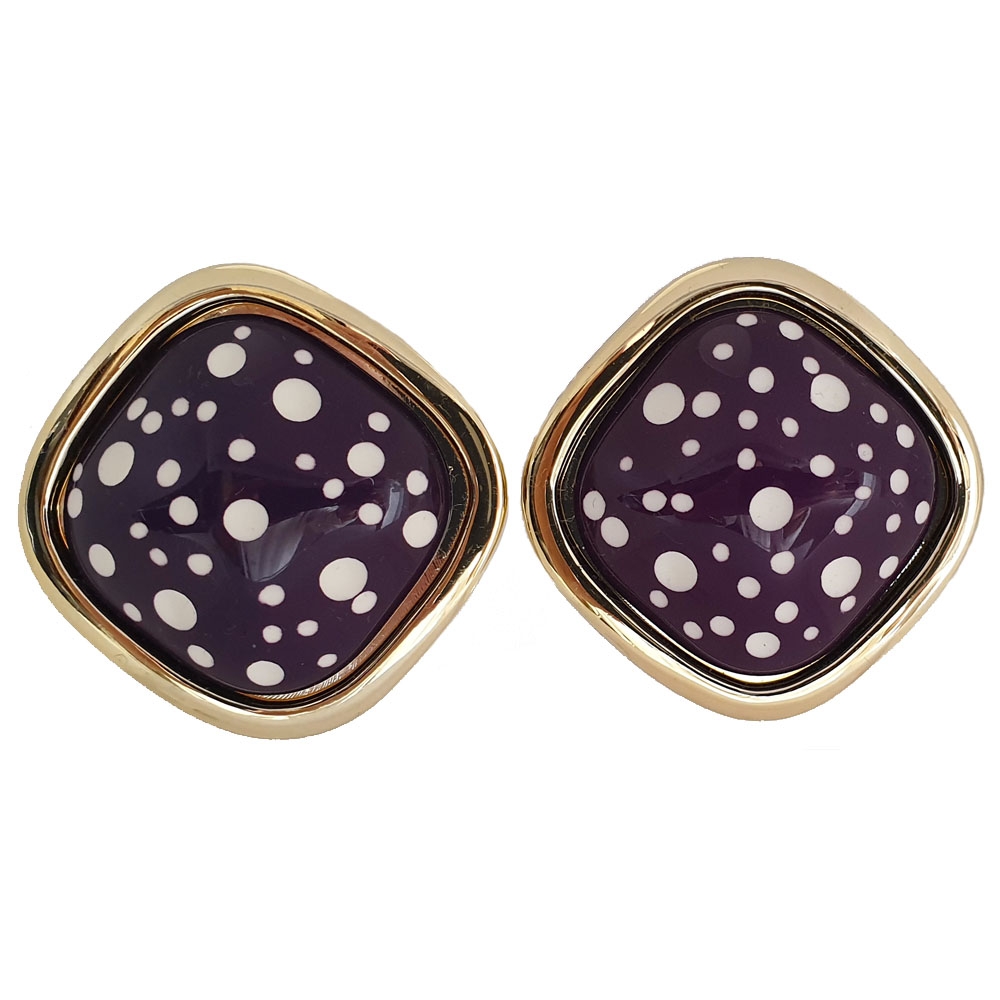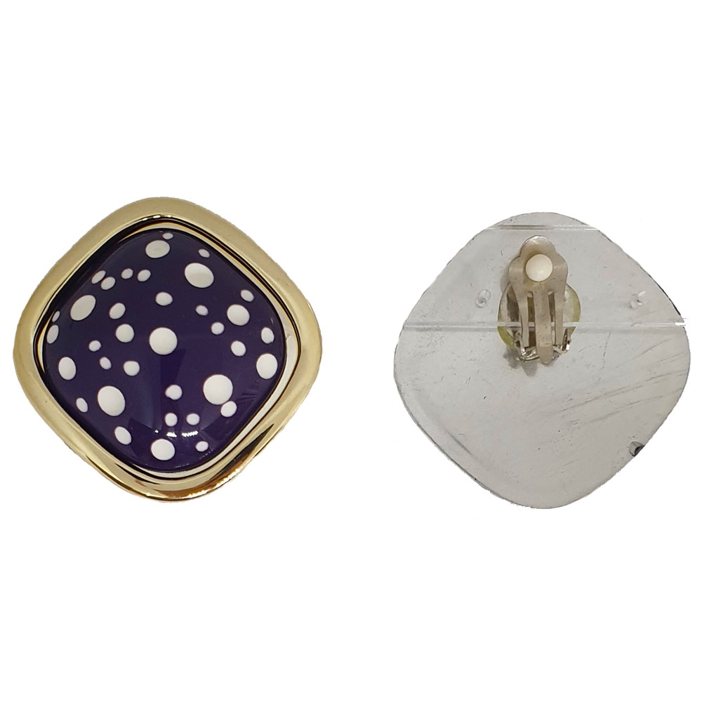Μεγάλα μπλε πουά κλιπ σκουλαρίκια ρόμβοι με χρυσή βάση