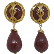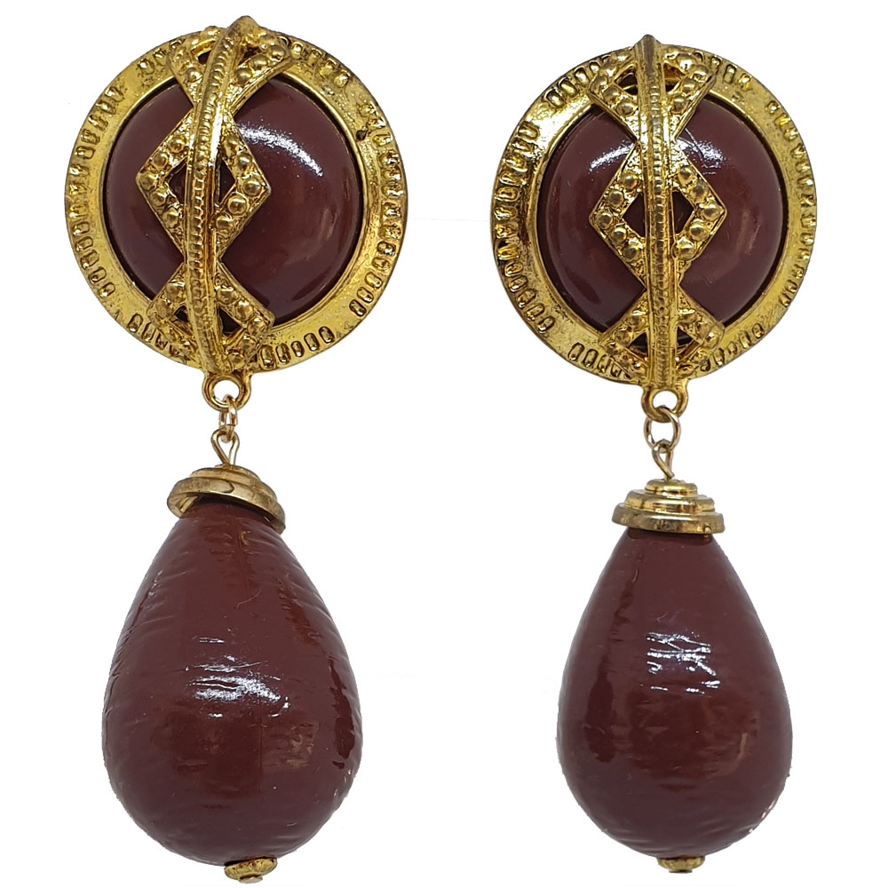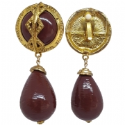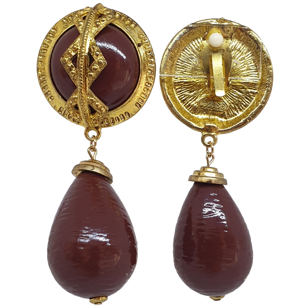Χρυσά κλιπ σκουλαρίκια Gladiator με καφέ οβάλ κρεμαστή πέτρα