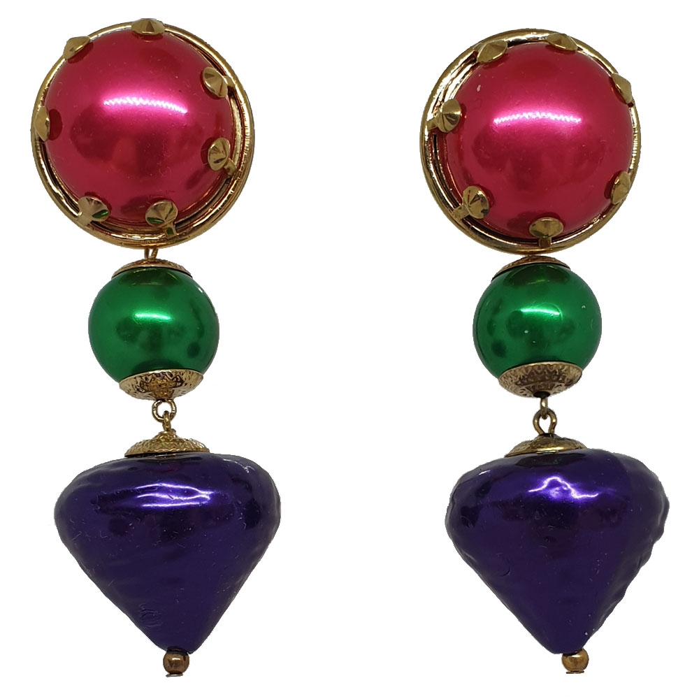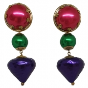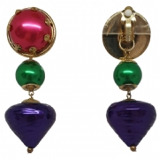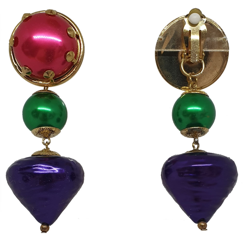 Vintage μεγάλα κλιπ σκουλαρίκια με πράσινες, μοβ και κόκκινες πέρλες