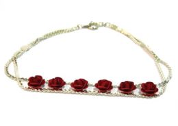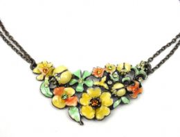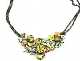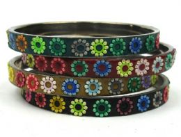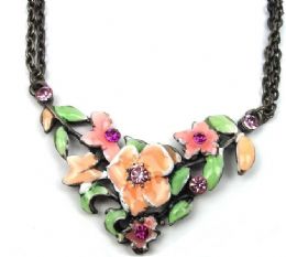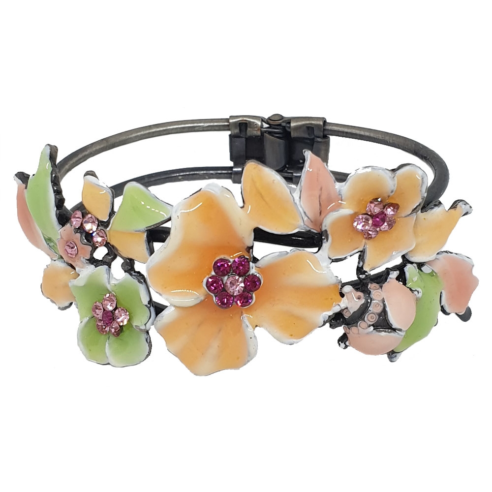 Βραχιόλι Blooming flowers με σομόν, βεραμάν και ροζ λουλούδια από σμάλτο και στρας