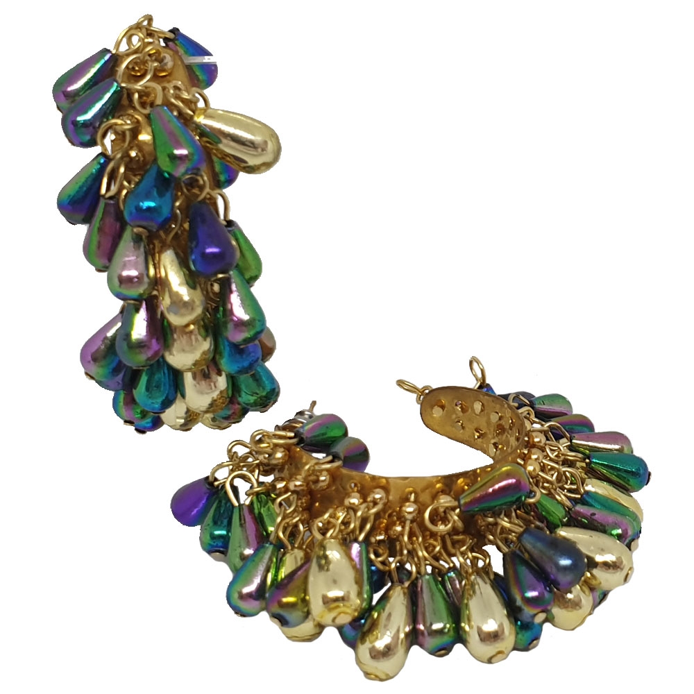 Χρυσοί κρίκοι με χρυσές και πράσινες ιριδίζουσες οβάλ πέρλες