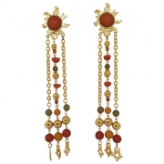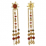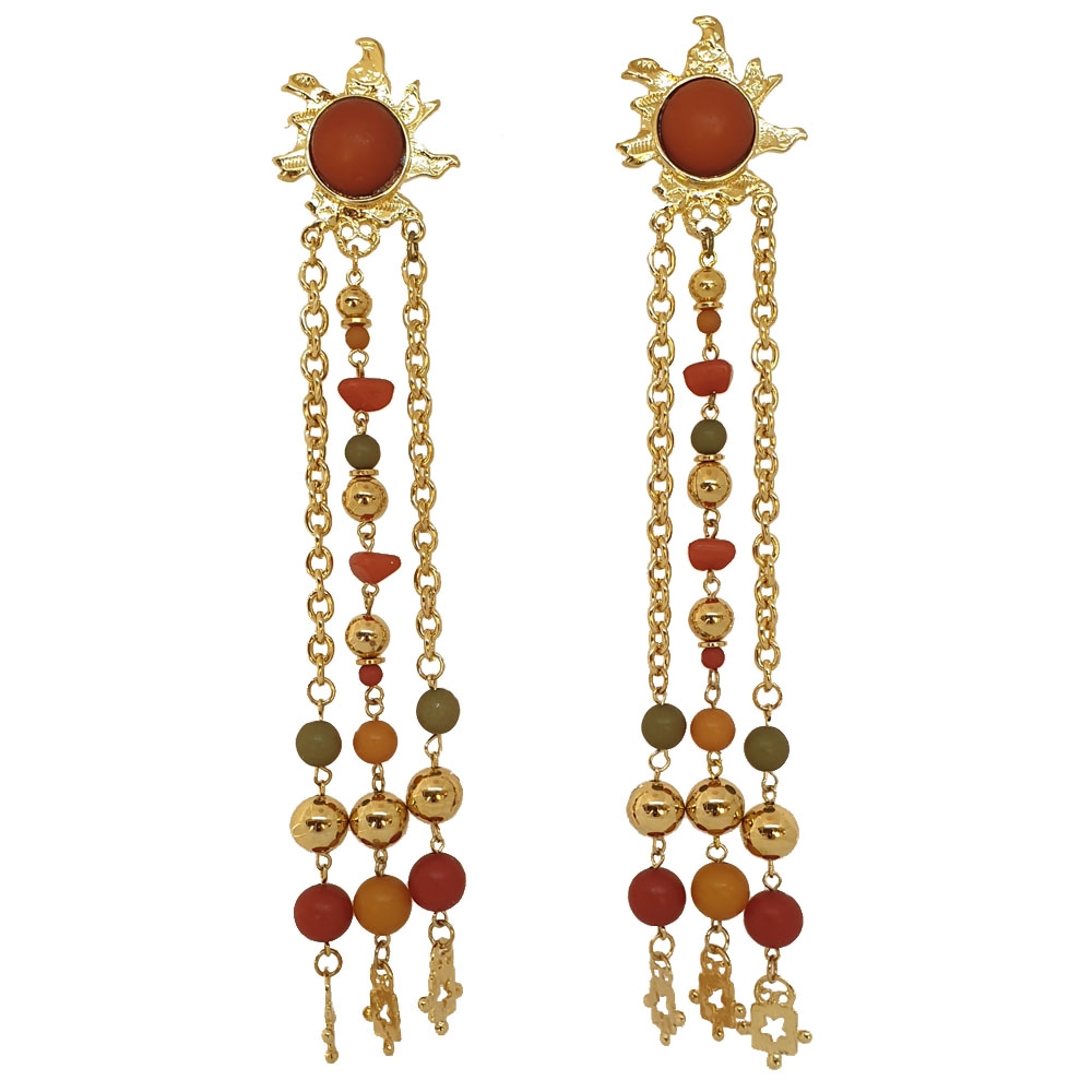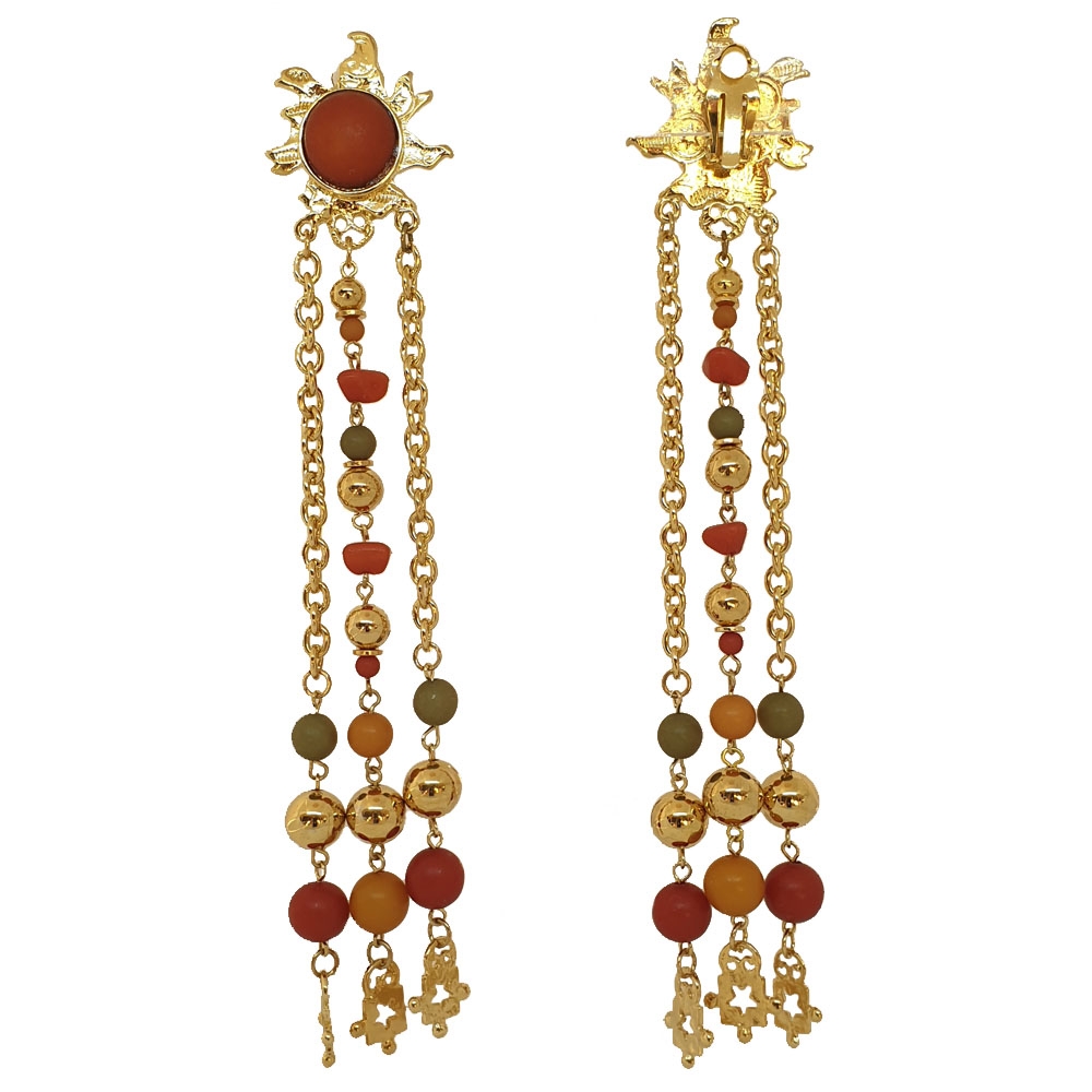 Πολύ μακριά χρυσά Vintage κλιπ σκουλαρίκια με χρυσές αλυσίδες και ταμπά, μουσταρδί και πράσινες ματ χάντρες