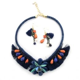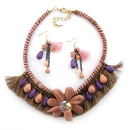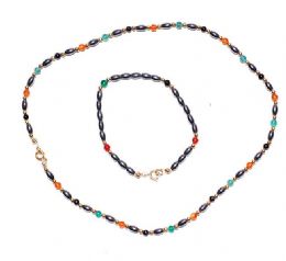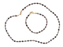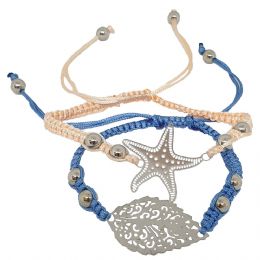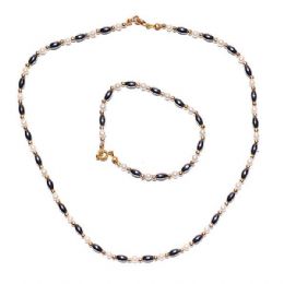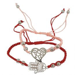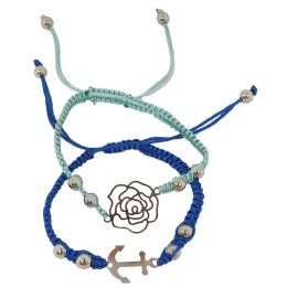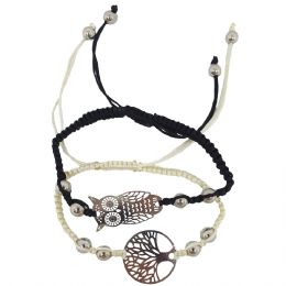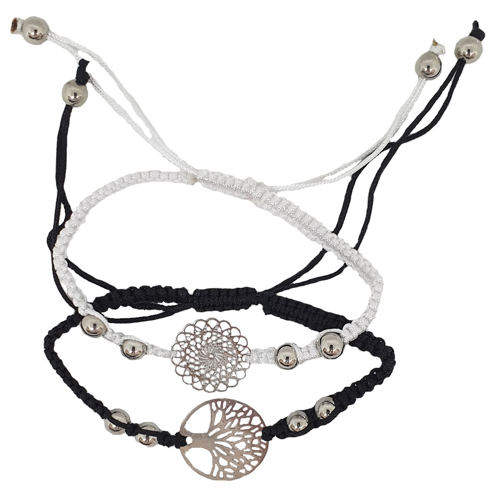 Λευκό και μαύρο σετ βραχιόλια μακραμέ με σκαλιστό λουλούδι και δεντράκι