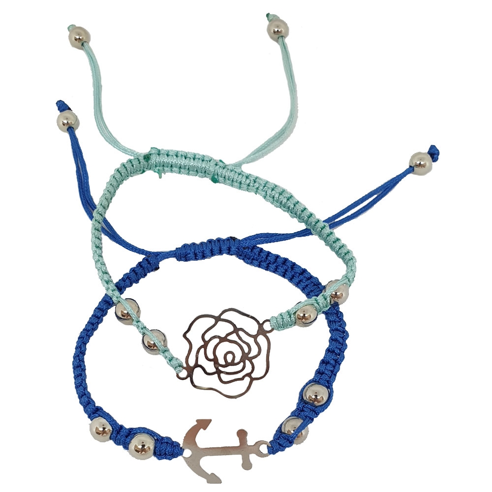 Γαλάζιο και indigo μπλε σετ βραχιόλια μακραμέ με σκαλιστή άγκυρα και τριαντάφυλλο