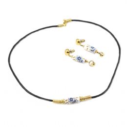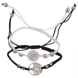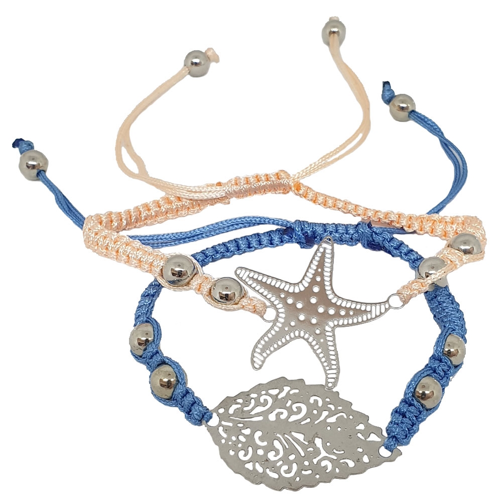 Γαλάζιο και σομόν σετ βραχιόλια μακραμέ με σκαλιστό φύλλο και αστερία