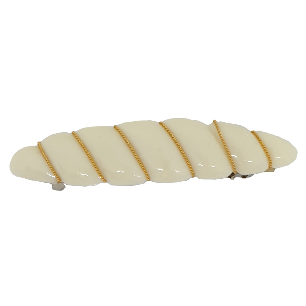 Οβάλ εκρού μπαρέτα μαλλιών με λεπτομέρεια από χρυσό μεταλλικό νήμα