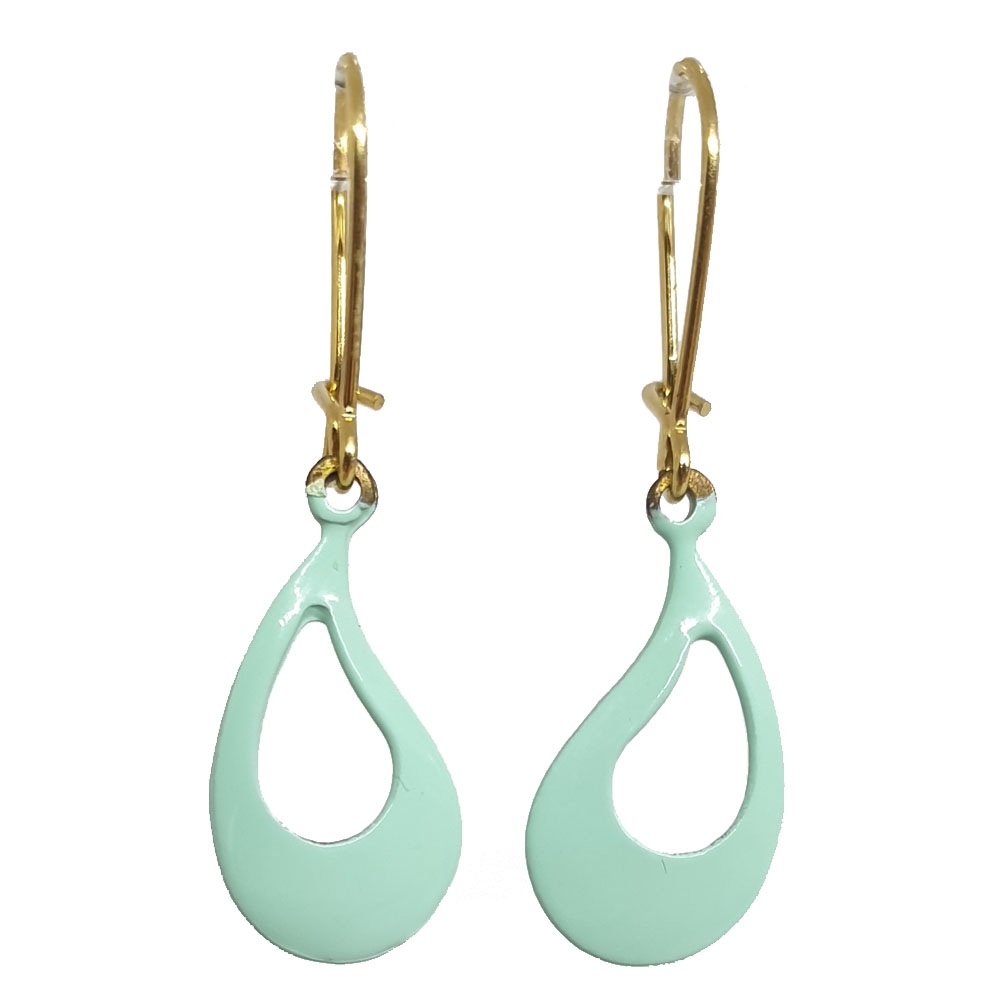 Μικρά μεταλλικά σκουλαρίκια δάκρυ με βεραμάν σμάλτο
