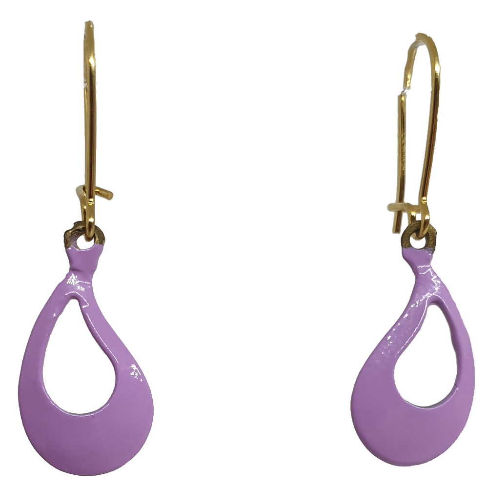 Μικρά μεταλλικά σκουλαρίκια δάκρυ με λιλά σμάλτο