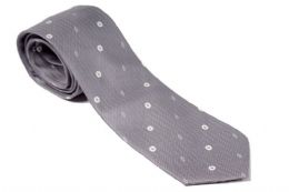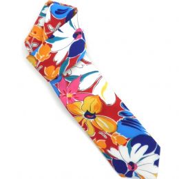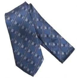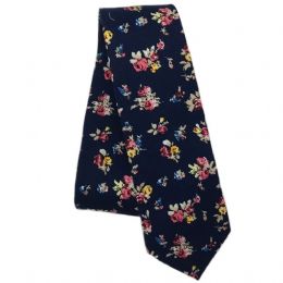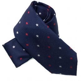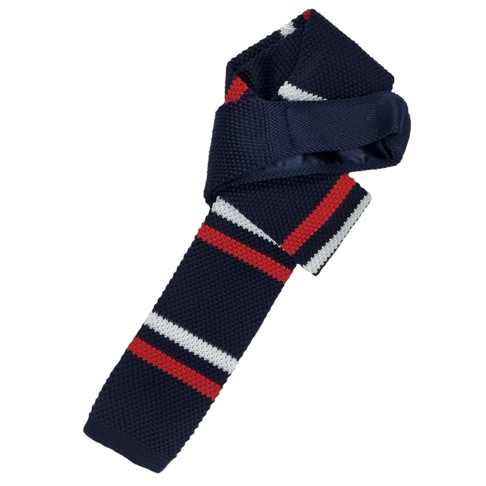 Μπλε σκούρη πολύ στενή πλεκτή γραβάτα με λευκές και κόκκινες ρίγες