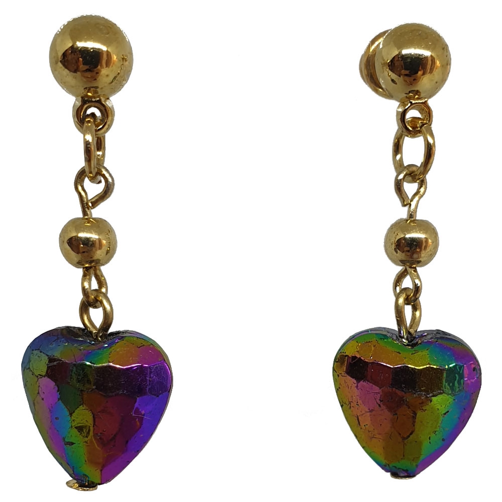 Μικρά χρυσά σκουλαρίκια με χρωματιστή ιριδίζουσα καρδιά