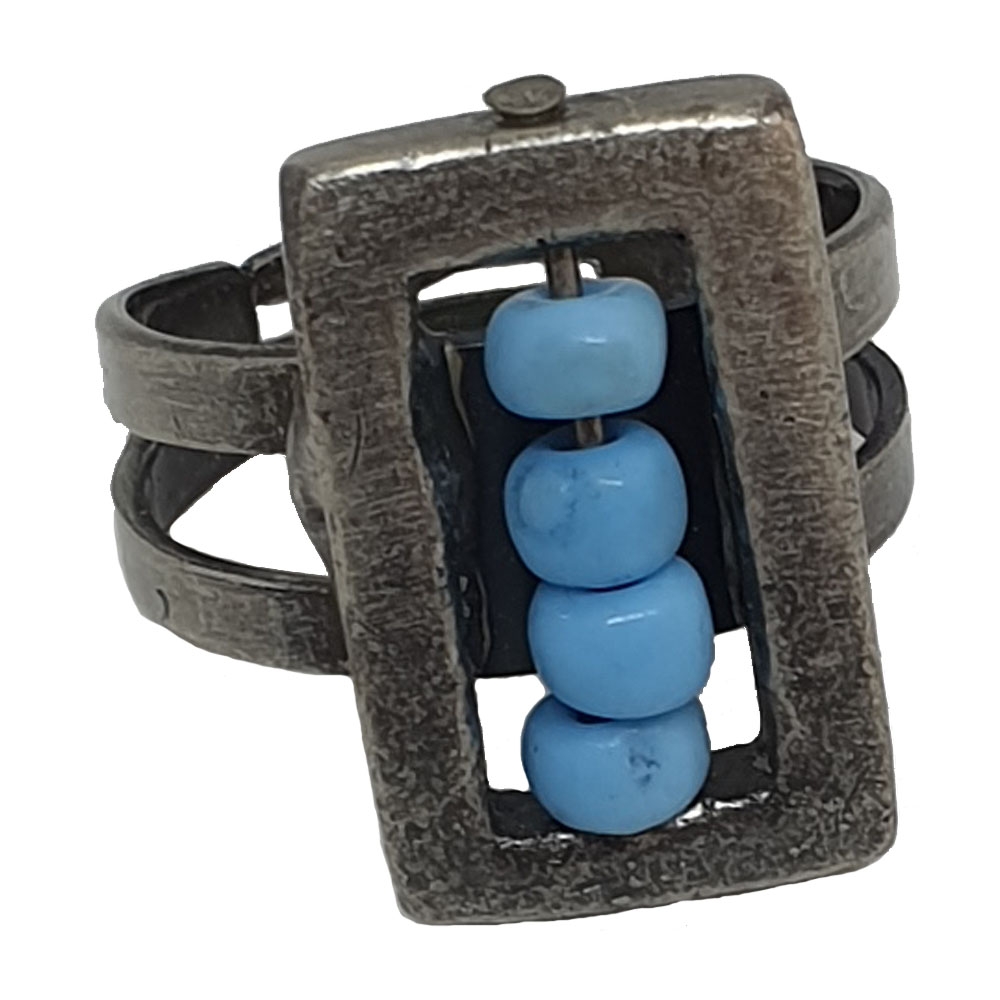 Antique ασημί ορθογώνιο δαχτυλίδι με γαλάζιες πέτρες
