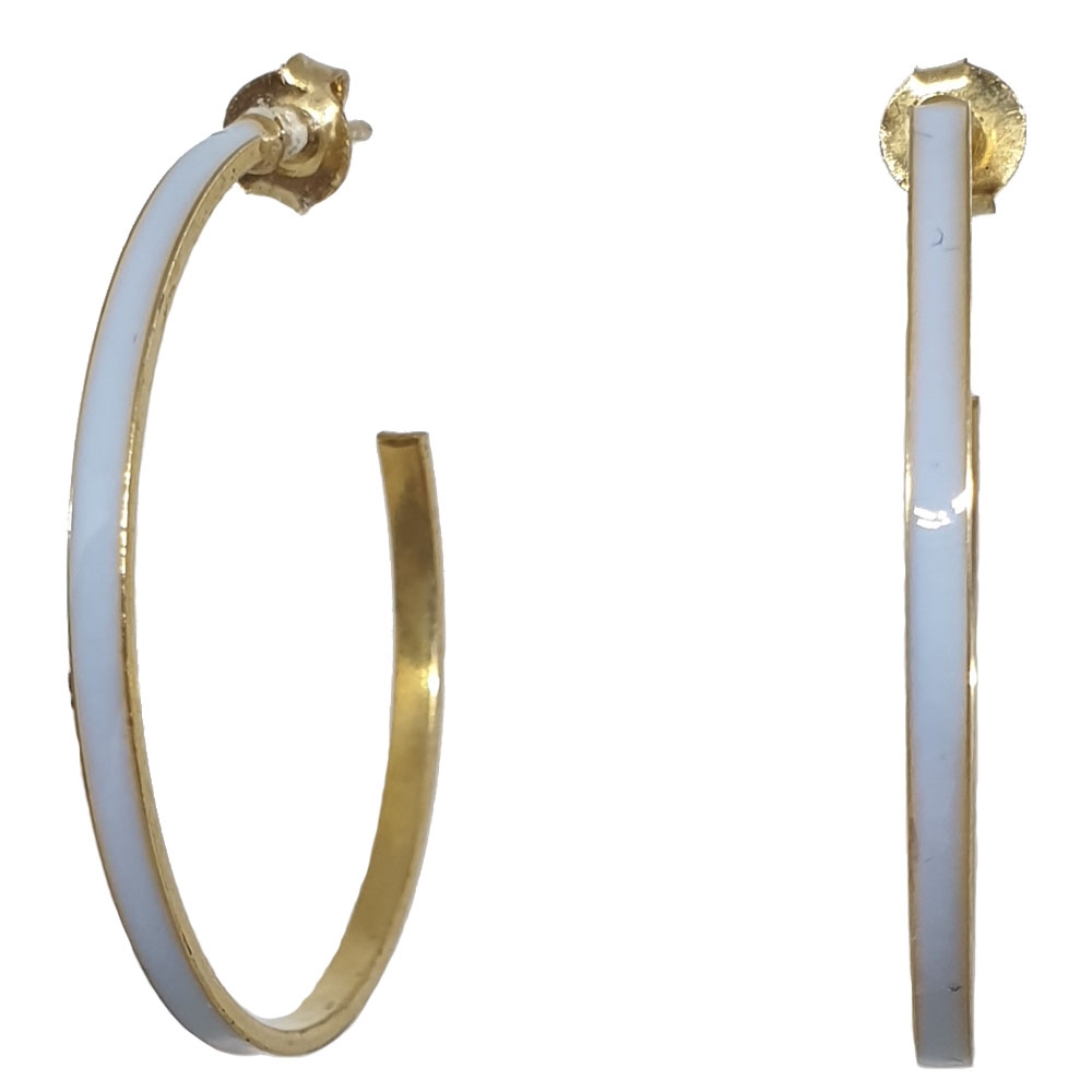 Χρυσά σκουλαρίκια κρίκοι με γαλάζιο σμάλτο