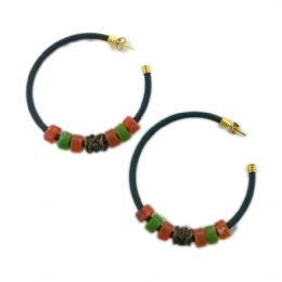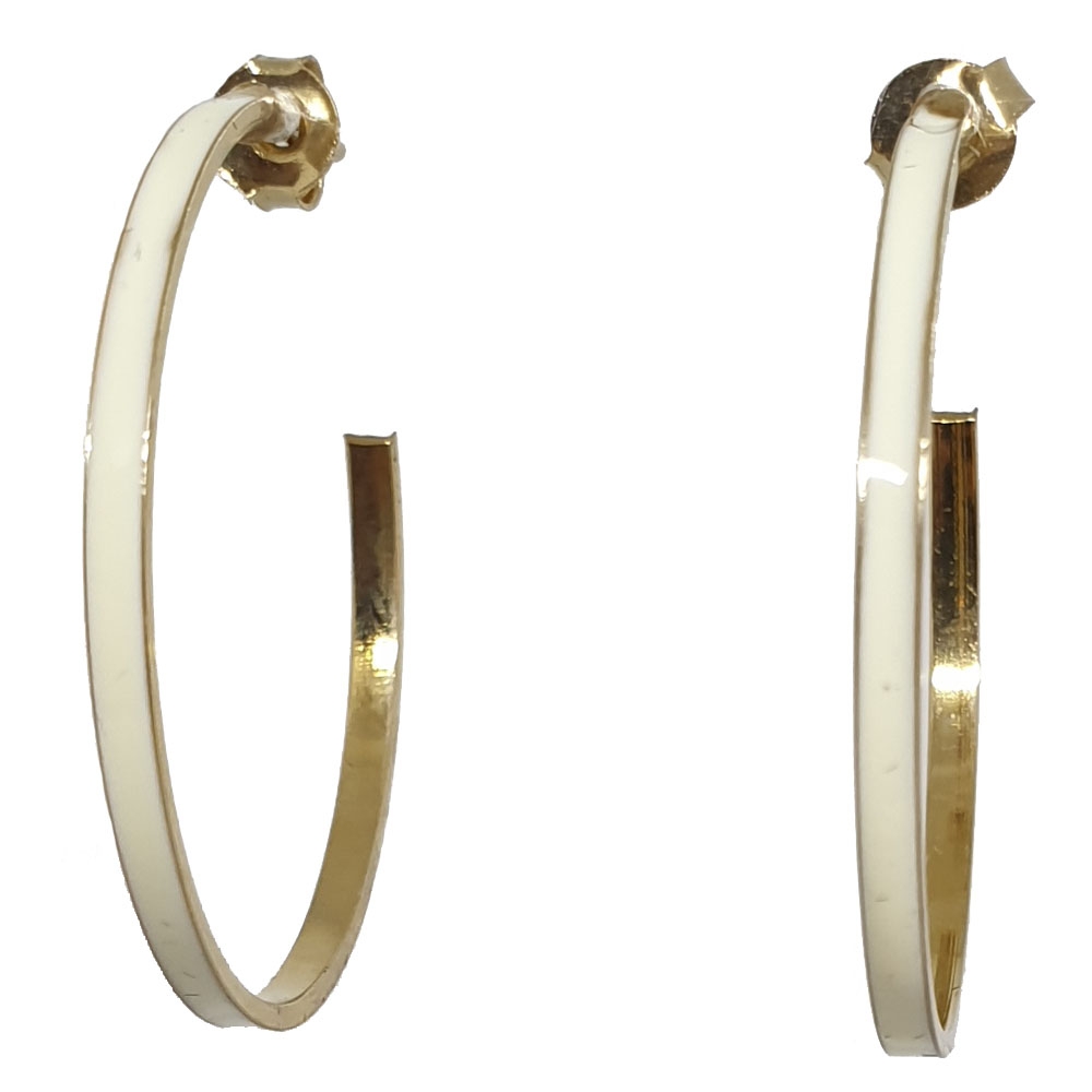 Χρυσά σκουλαρίκια κρίκοι με λευκό σμάλτο