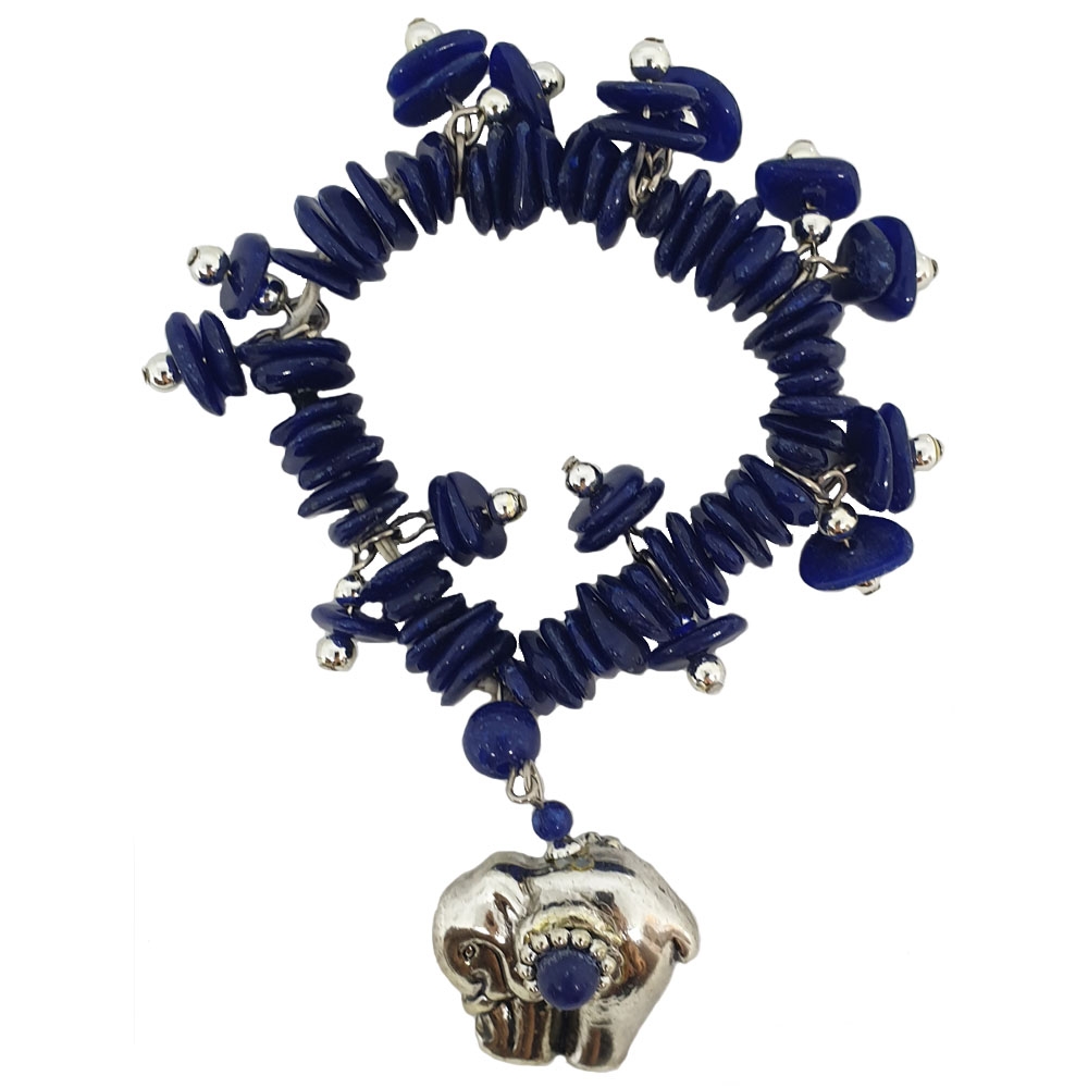 Ελαστικό βραχιόλι με μπλε lucite πέτρες και ασημένιο charm με ελέφαντα
