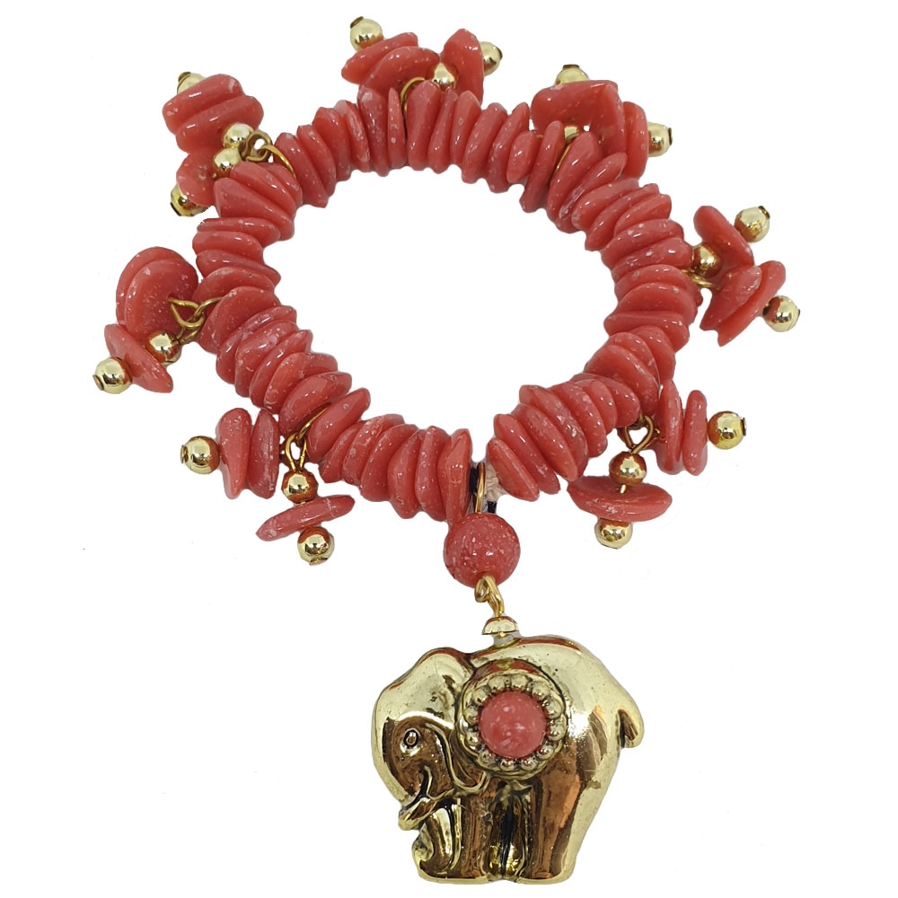 Ελαστικό βραχιόλι με κοραλί lucite πέτρες και χρυσό charm με ελέφαντα