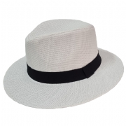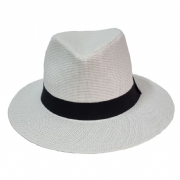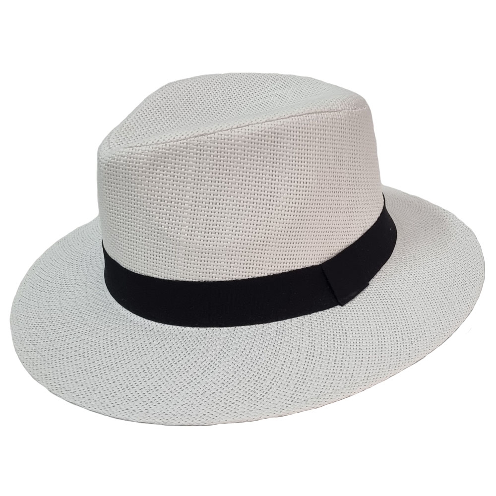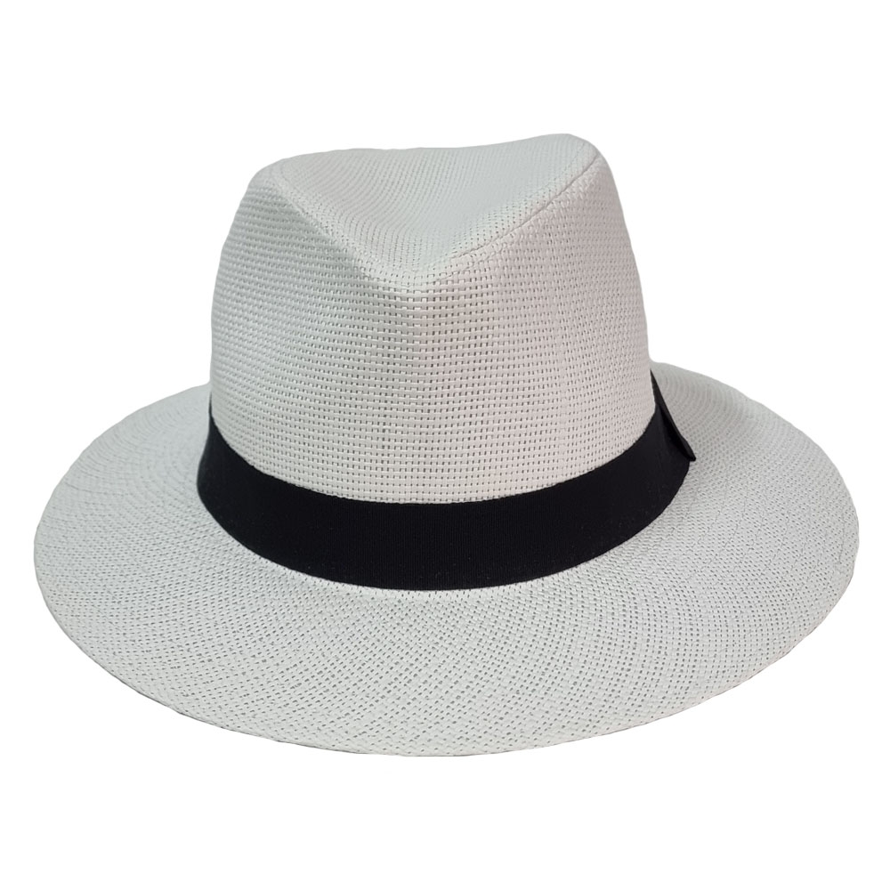 Λευκό Panama καπέλο με μαύρη κορδέλα και σκληρό γείσο