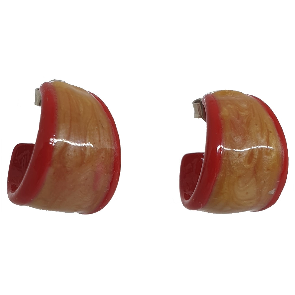 Μικρά κόκκινα κεραμικά σκουλαρίκια κρίκοι με μελί σμάλτο