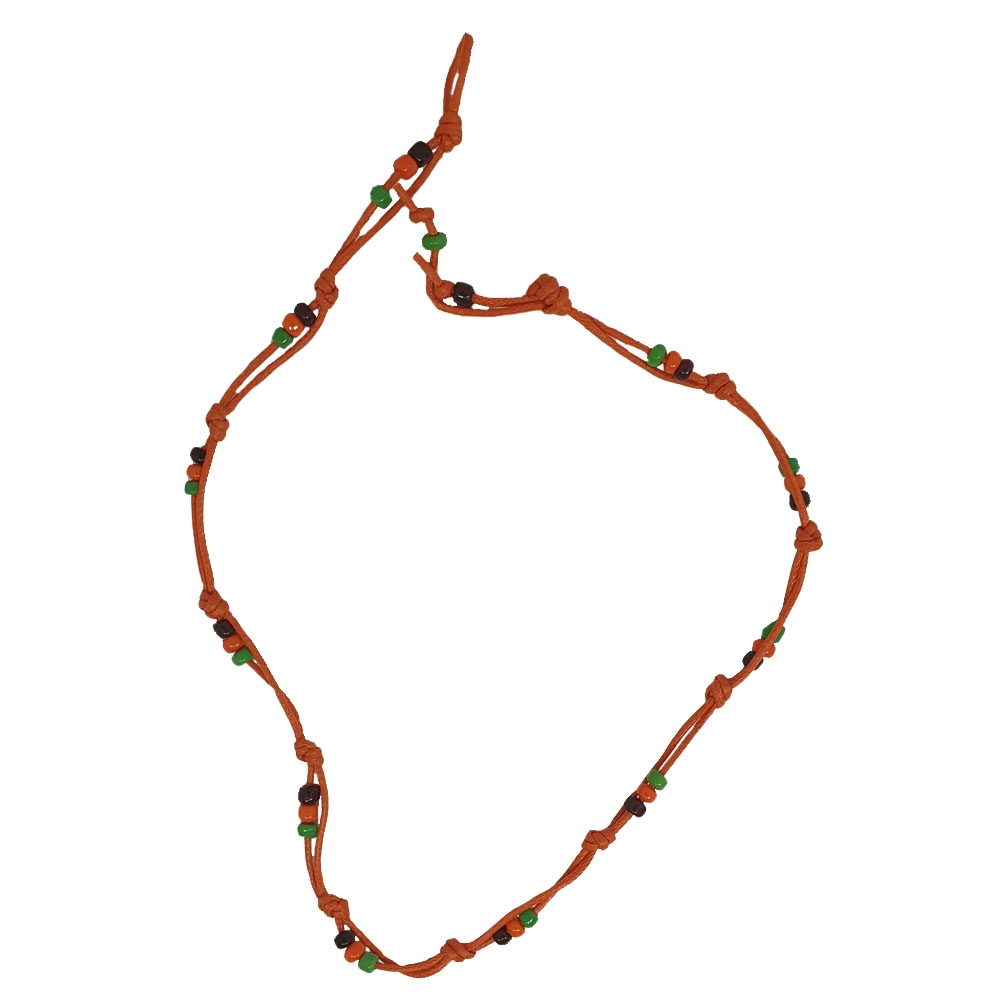 Πορτοκαλί unisex κολιέ με μαύρες, πορτοκαλί και πράσινες χάντρες