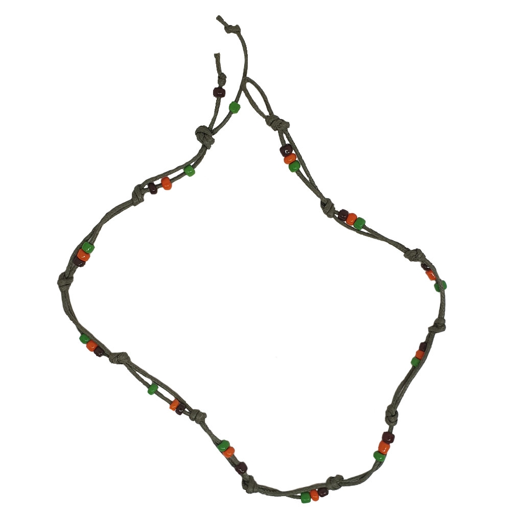 Χακί unisex κολιέ με μαύρες, πορτοκαλί και πράσινες χάντρες