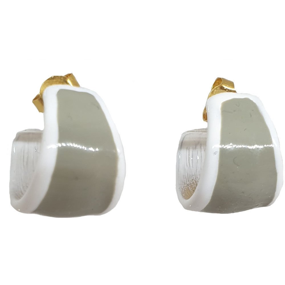 Μικρά λευκά κεραμικά σκουλαρίκια κρίκοι με γκρι σμάλτο