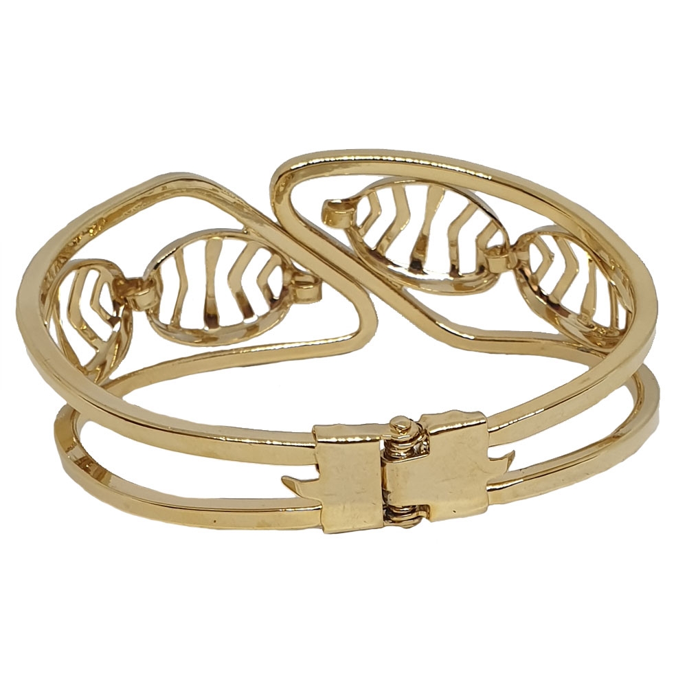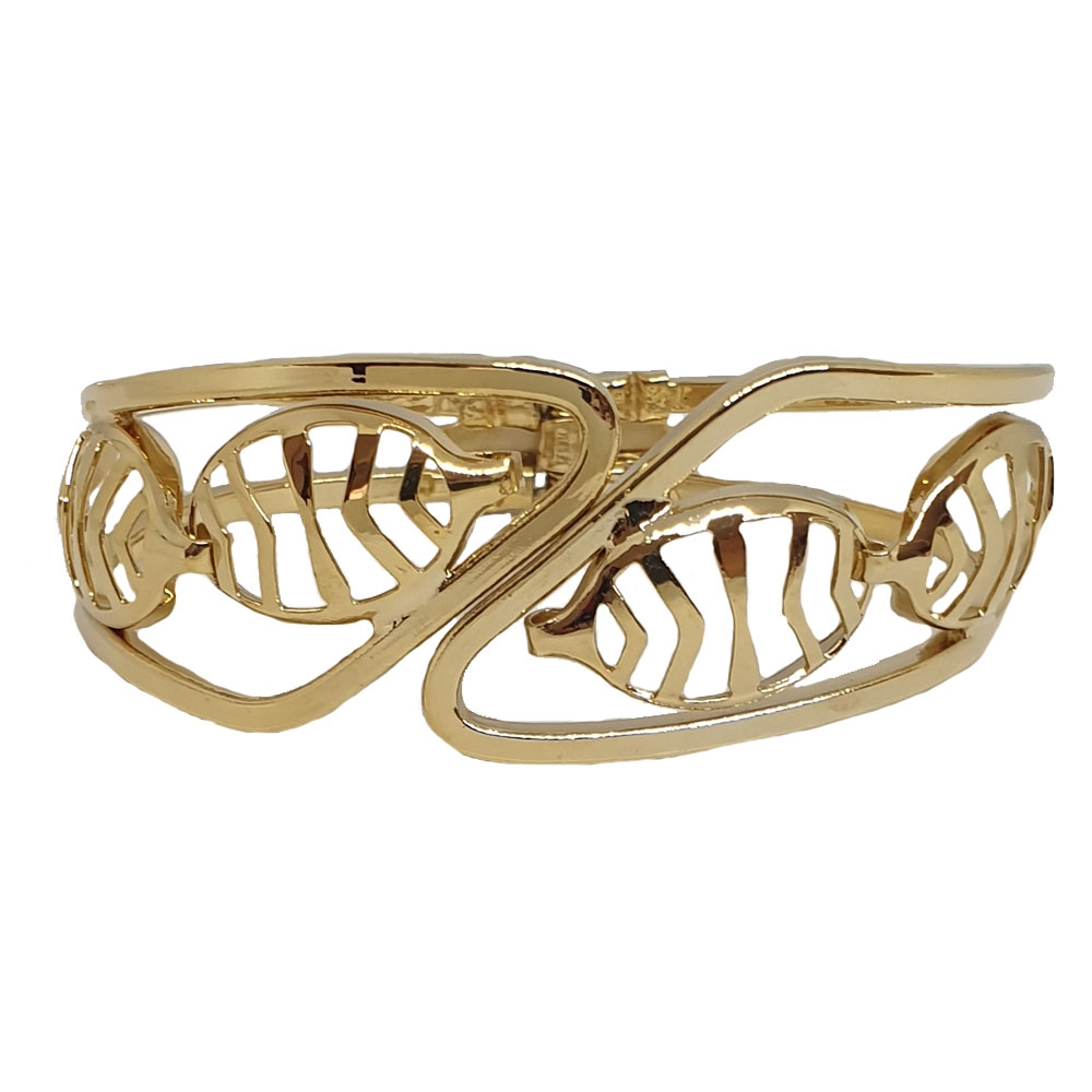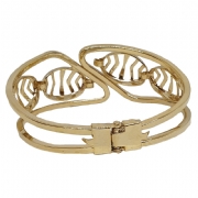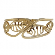 Χρυσό γυαλιστερό βραχιόλι χειροπέδα με σκαλιστά φύλλα