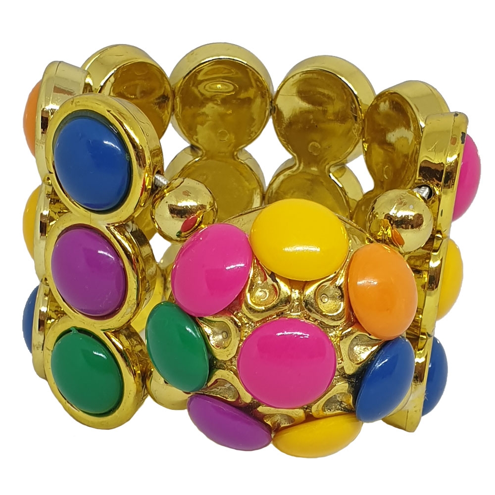 Χρυσό ελαστικό βραχιόλι με χρωματιστές πέτρες