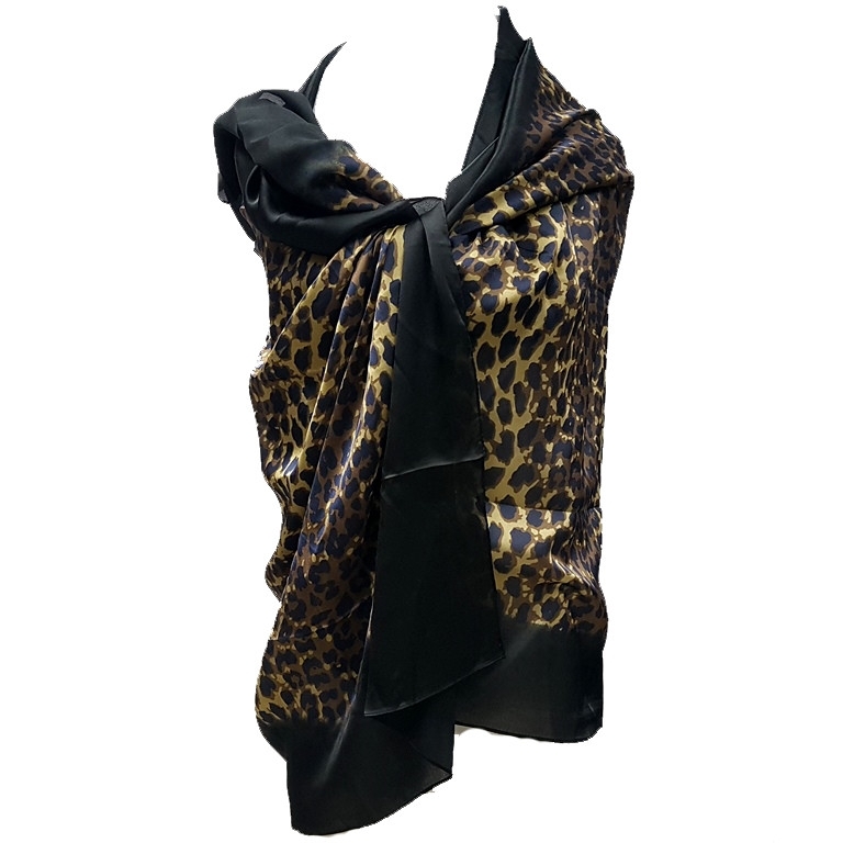 Μαύρη μεταξωτή animal print εσάρπα με μονόχρωμη μπορντούρα