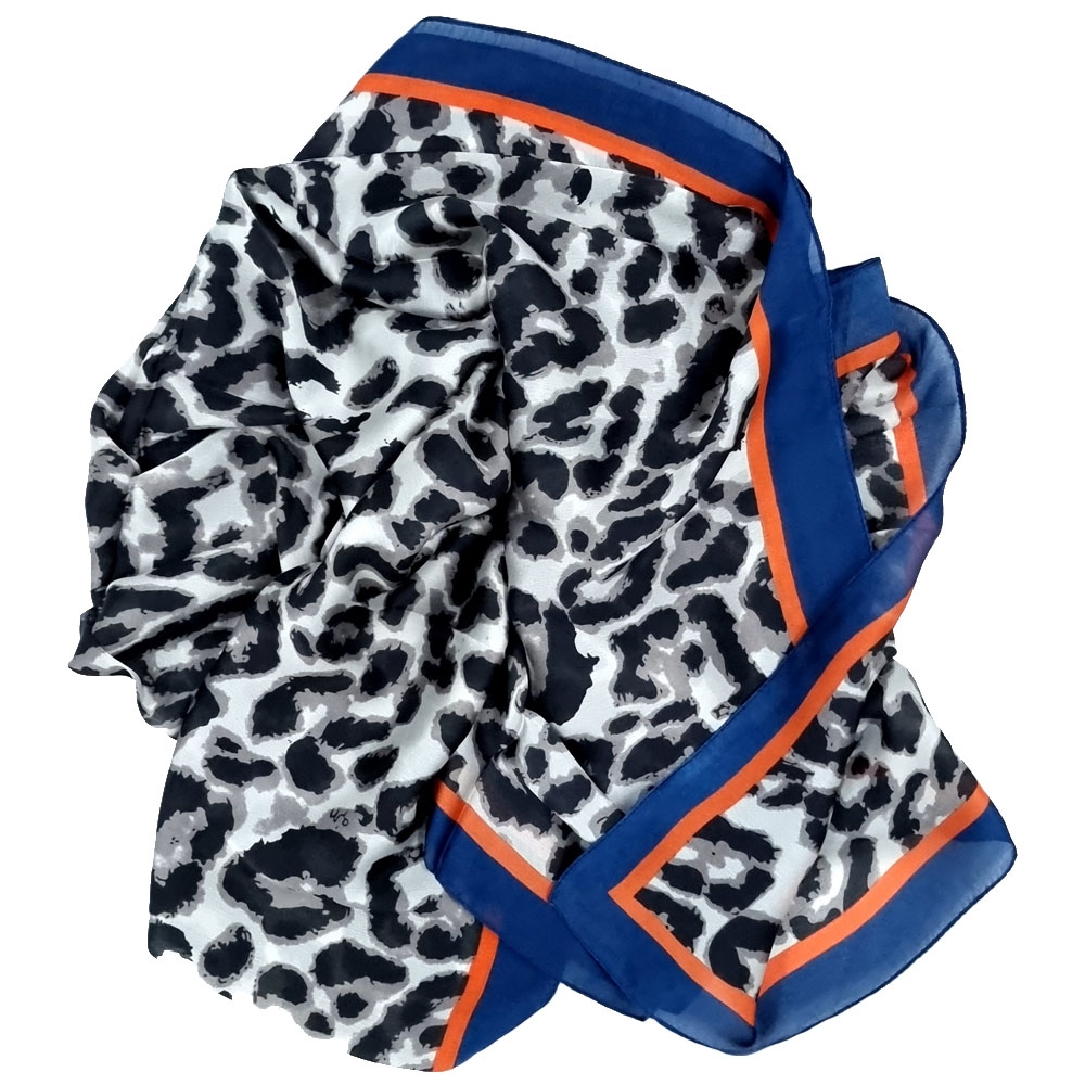 Μεταξωτή γκρι και μπλε animal print εσάρπα - φουλάρι με ταμπά ρίγα